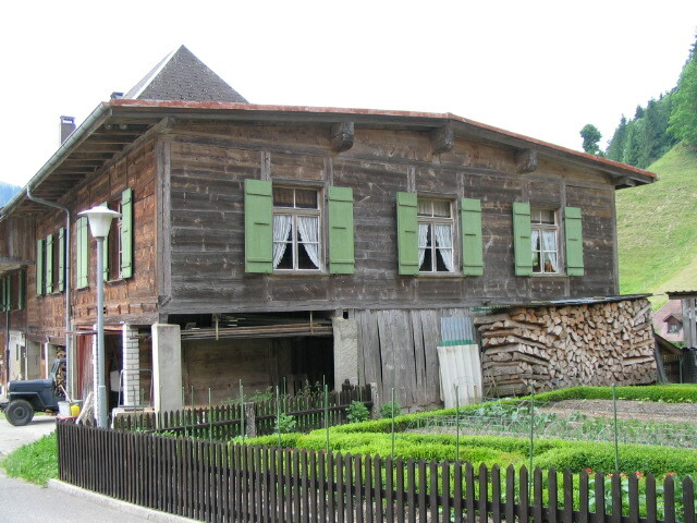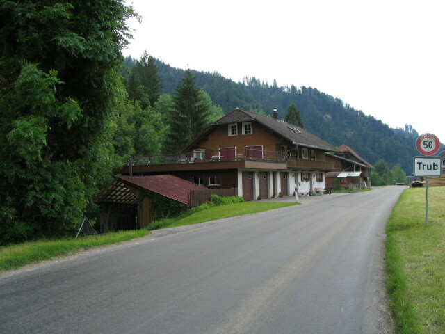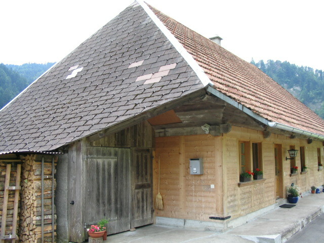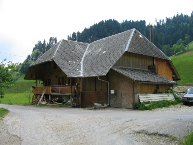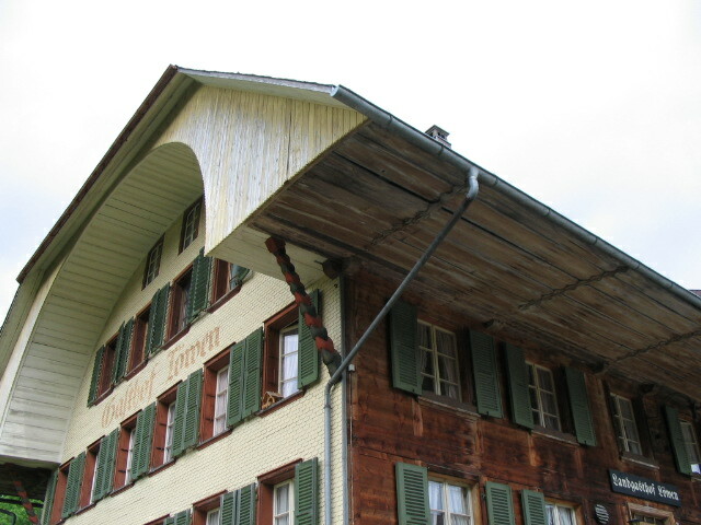 Up in the center of the village of Trub: an unusually shallow-roofed wing of a house.