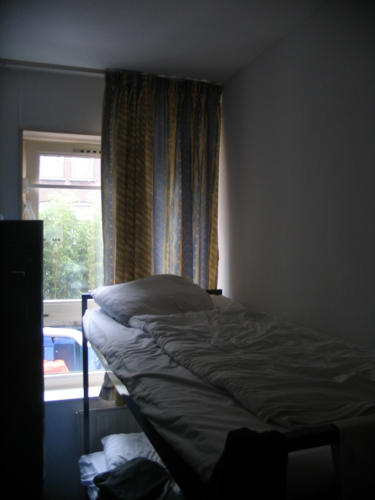 My perfectly adequate bed at the Hans Brinker on the morning of our departure.