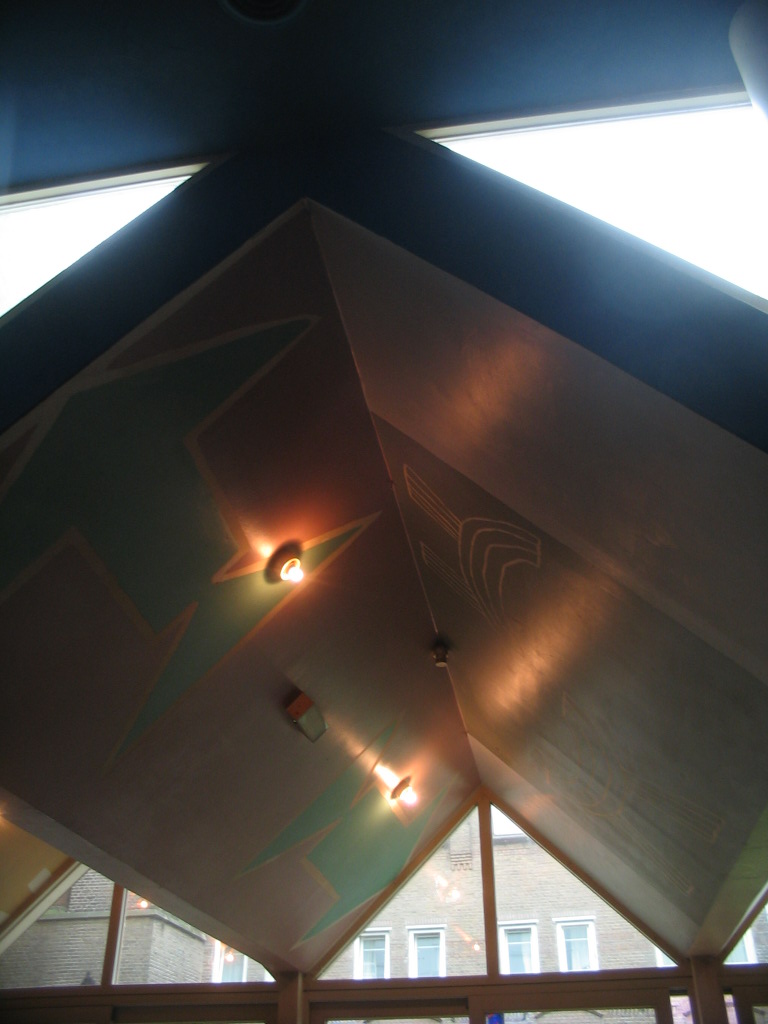 All sorts of triangles at the ceiling of the dining room addition.