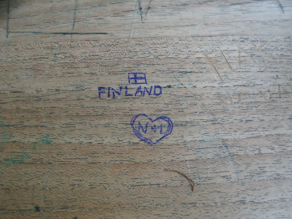 Carved into the dining table at breakfast: memories.
