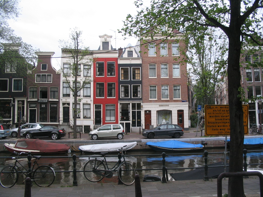 There's a red house over yonder. You might miss it. It's, like, super-narrow. (This is along the Spiegelgracht as we headed back toward the center.)