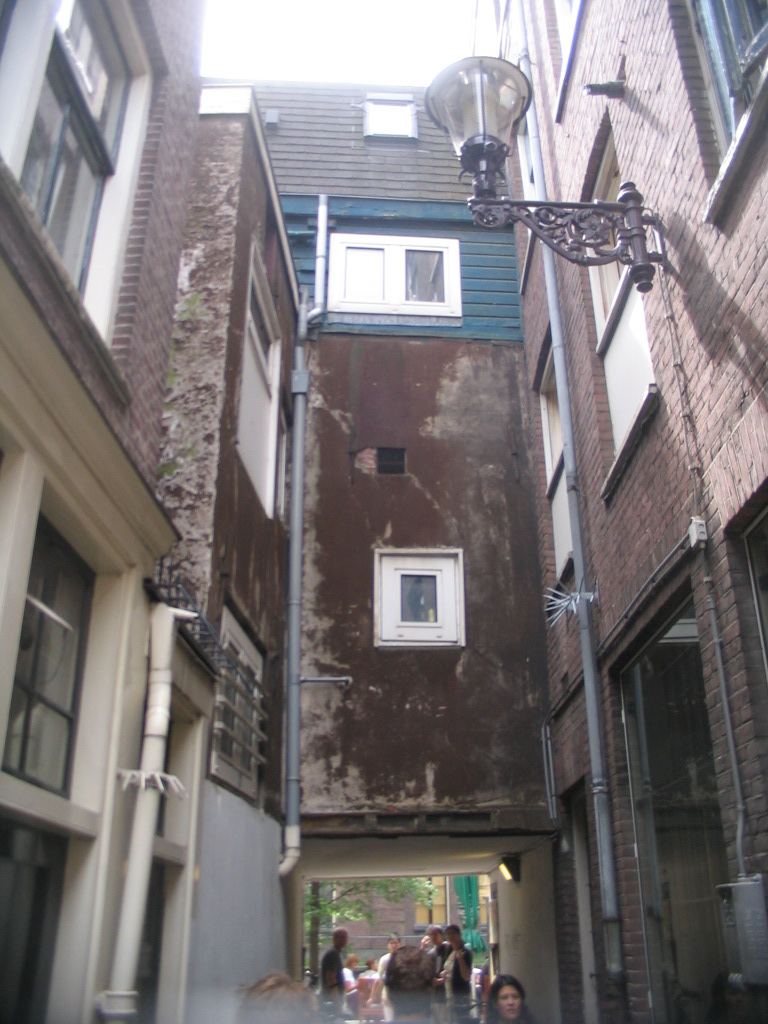 A pretty cool (though dilapidated) multistory building-bridge at, I think, one end of the very narrow alley Gebed Zonder End.