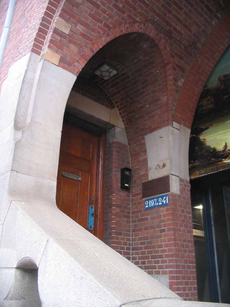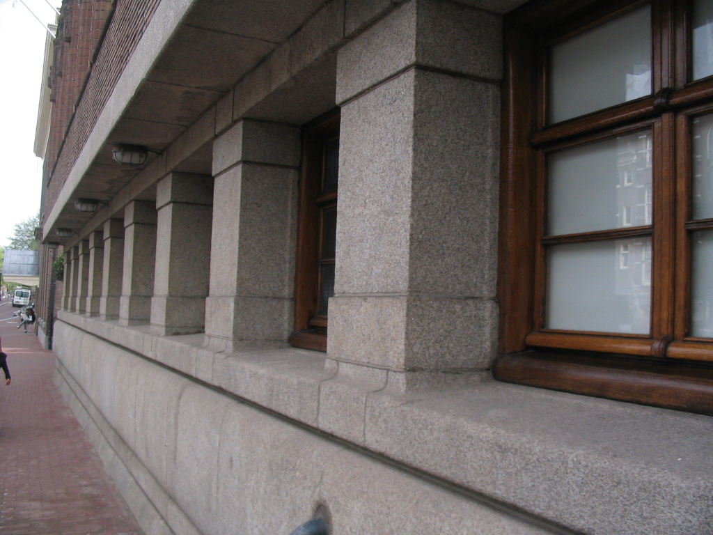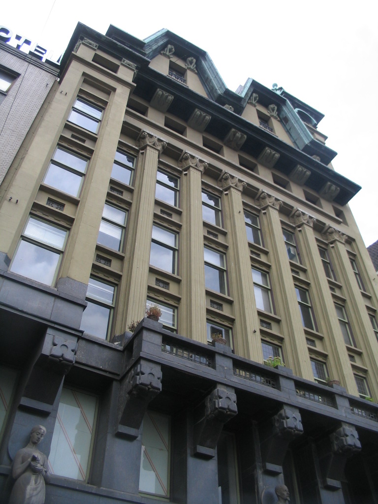 Again on the west side of the Damrak, just northwest of the Beurs: classical columns kidnapped and shoved into an Amsterdam School composition, with endearingly weird results.