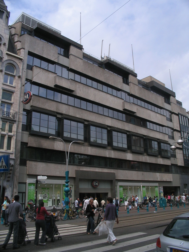 On the west side of the Damrak, just south of the Beurspassage: an odd mixture of heavy and light tectonics. You can tell it's the Damrak because of the teal totems.