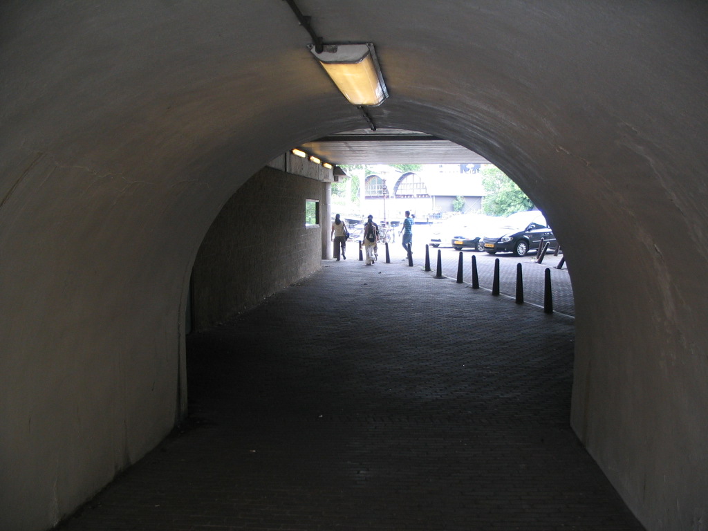 We crossed northward under the rail tracks at Nieuwe Teetuinen through this cool tunnel.