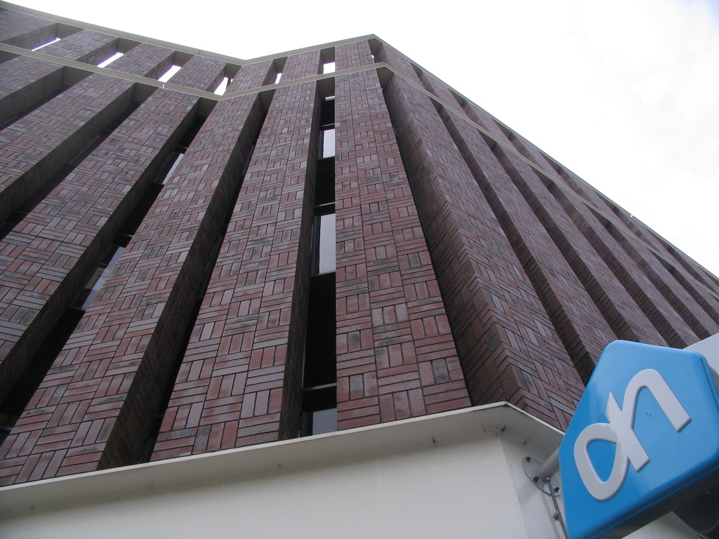 Declarative brickwork on the Albert Heijn supermarket at Spaarndammerstraat and Tasmanstraat.