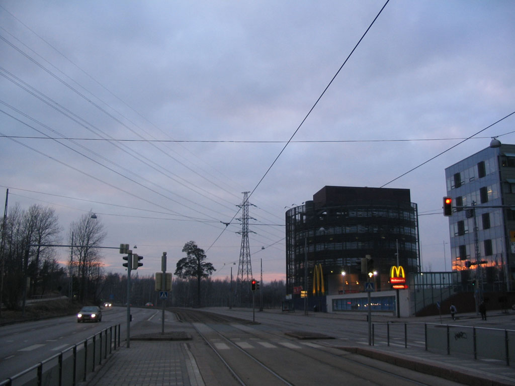 The tram stop in Munkkiniemi where I would catch the #4 tram after getting off the bus on the back way.