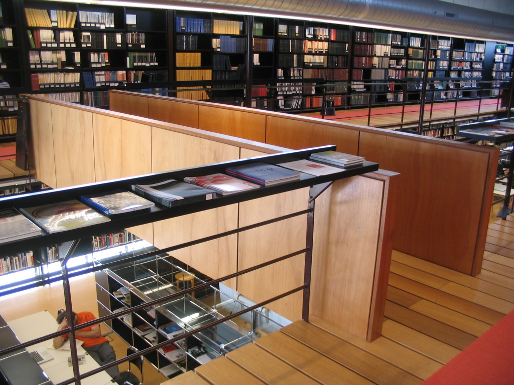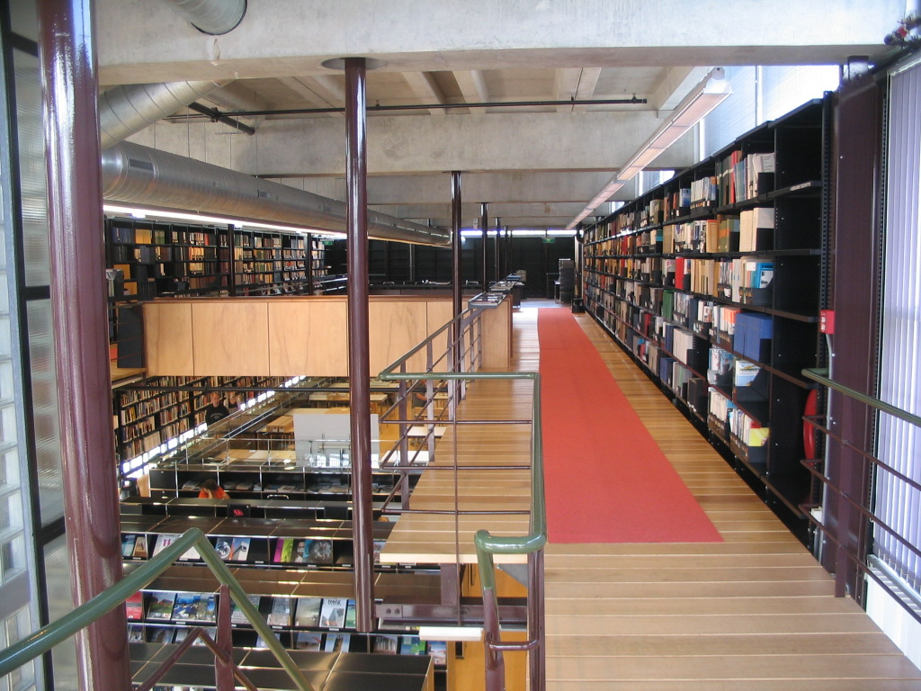 The uppermost level is mostly just aisles by the stacks, with circulation aided by this cool wooden bridge in the middle.