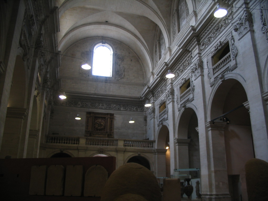 Just up Rue de la République, I investigated the Musée Lapidaire rather than just walking by it. It's a striking museum, being set up in the nave of the 17th century chapel of the Collège des Jésuites. Here, the smooth vault. Interesting that the vault is pointed-arch style despite the baroque provenance of the church.