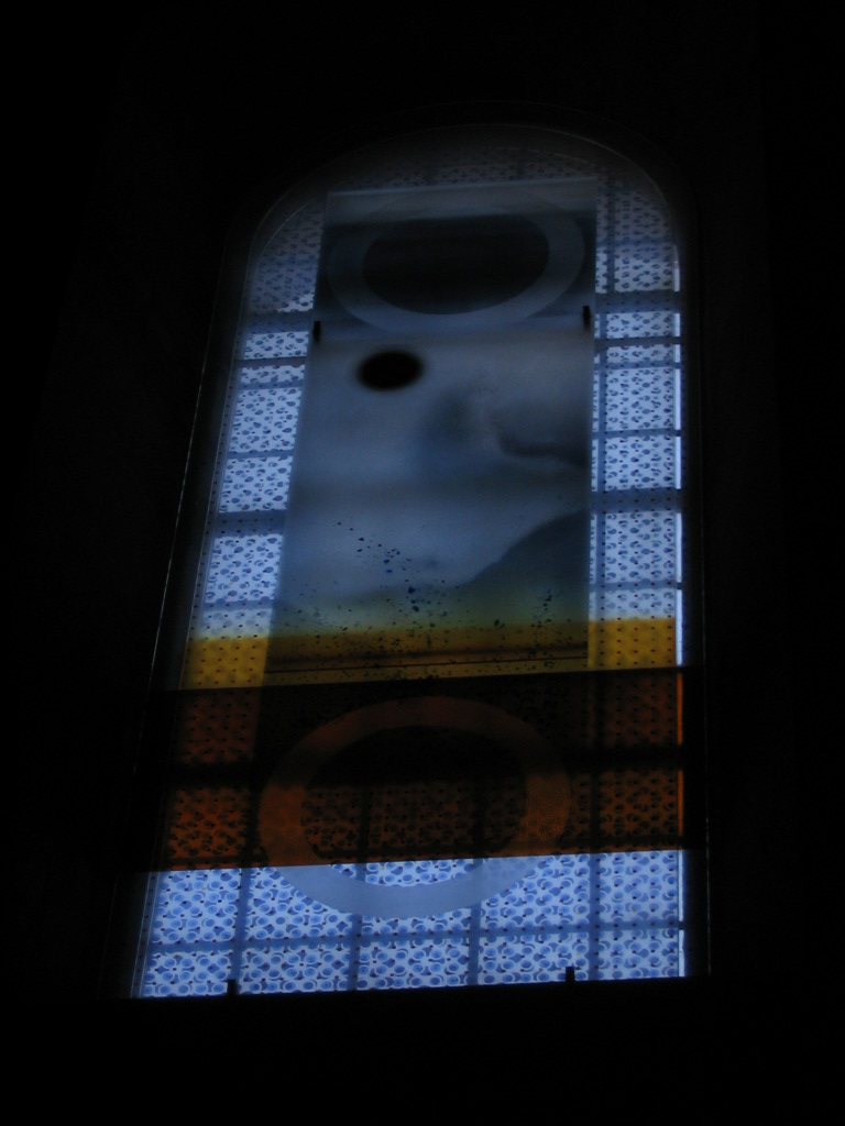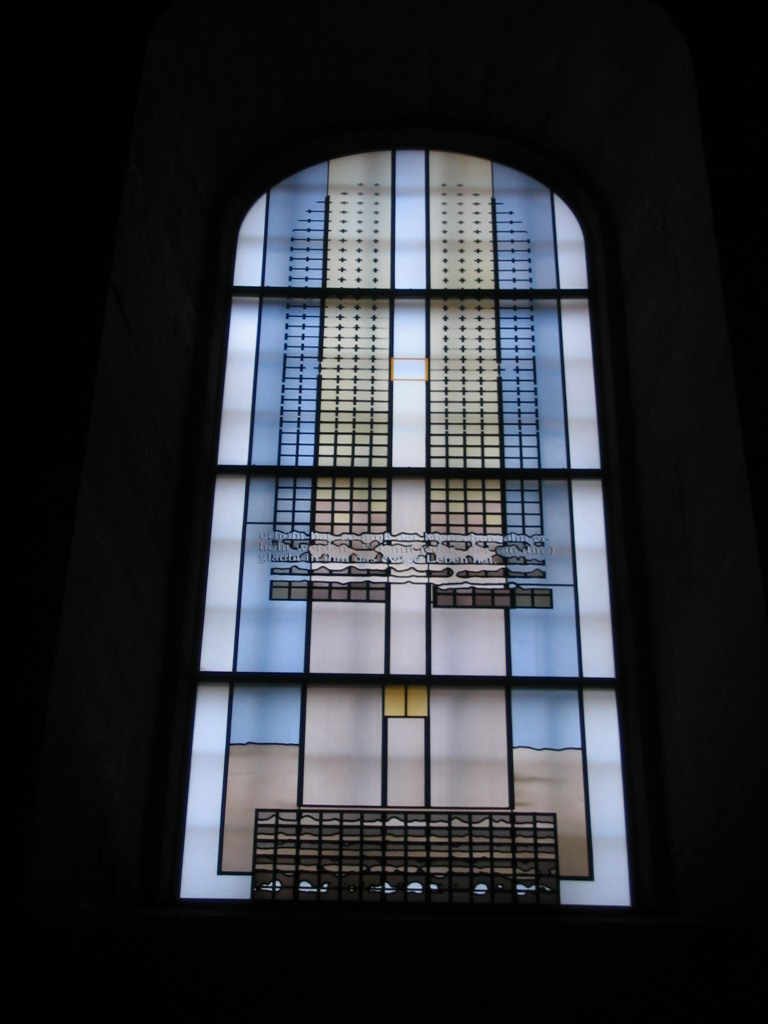 The windows seemed to be devoid of traditionally stained glass, but in its place were some pretty neat abstract images such as this one