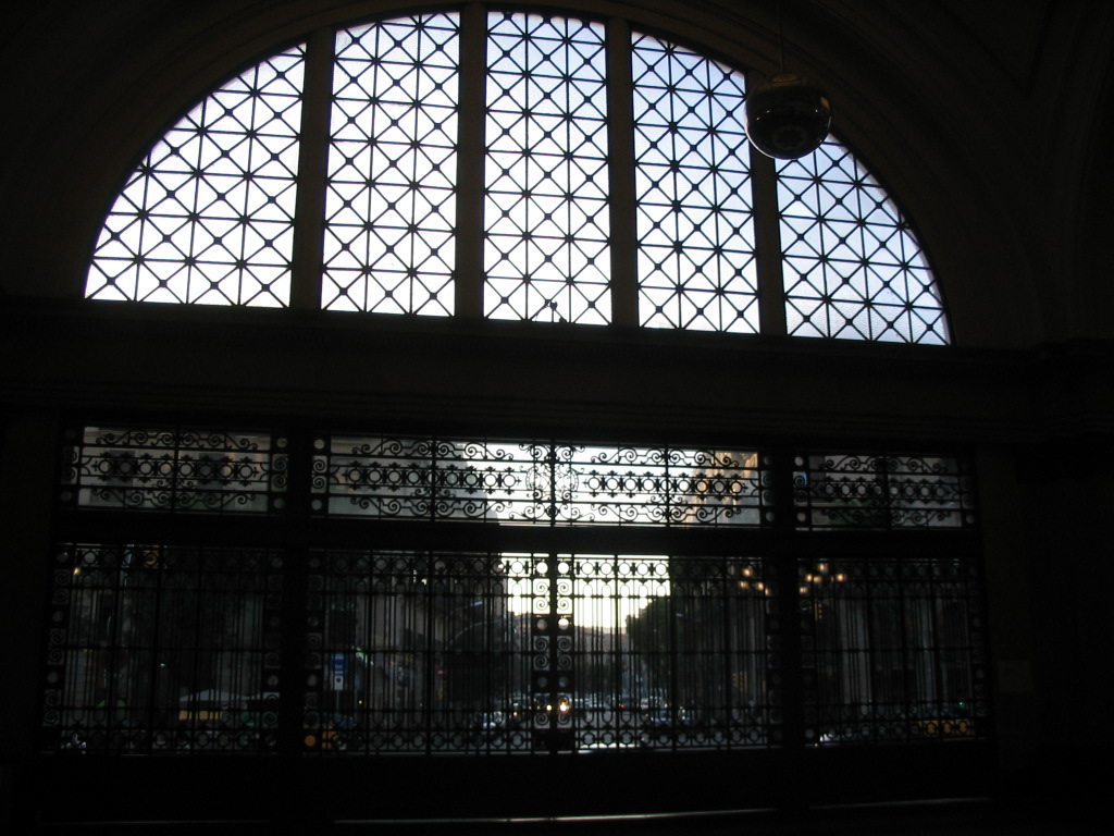 Peering through the screens of the station's front hall out into the Ciutat Vella.