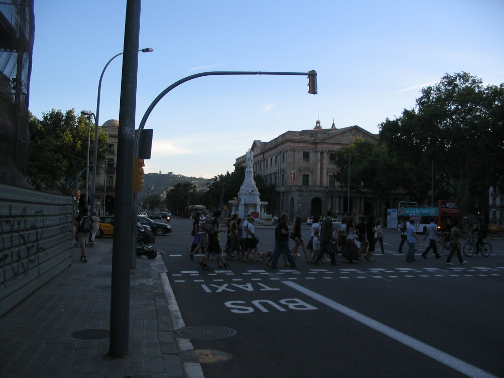 Avinguda Marquès de l'Argentera and its continuation Passeig de Colom, which form the seaward boundary of the Ciutat Vella, afford a view of the top of Montjuïc in the distance. (Avinguda and passeig both mean "avenue" more or less.)
