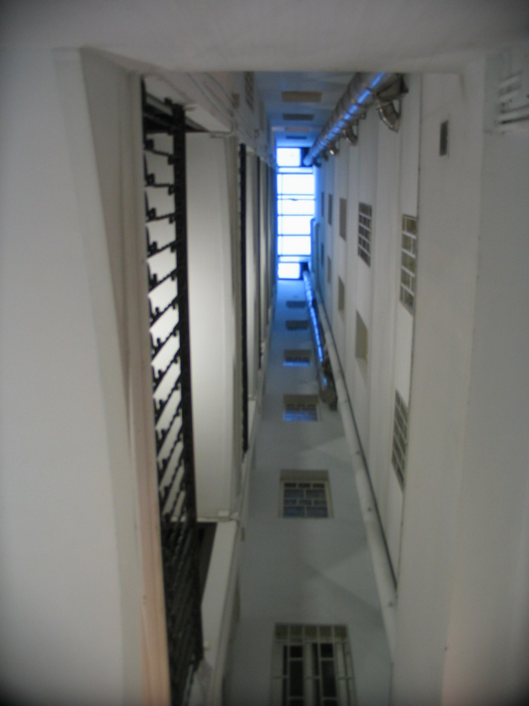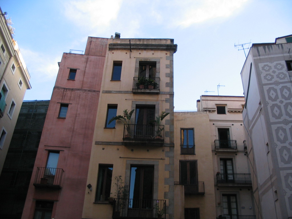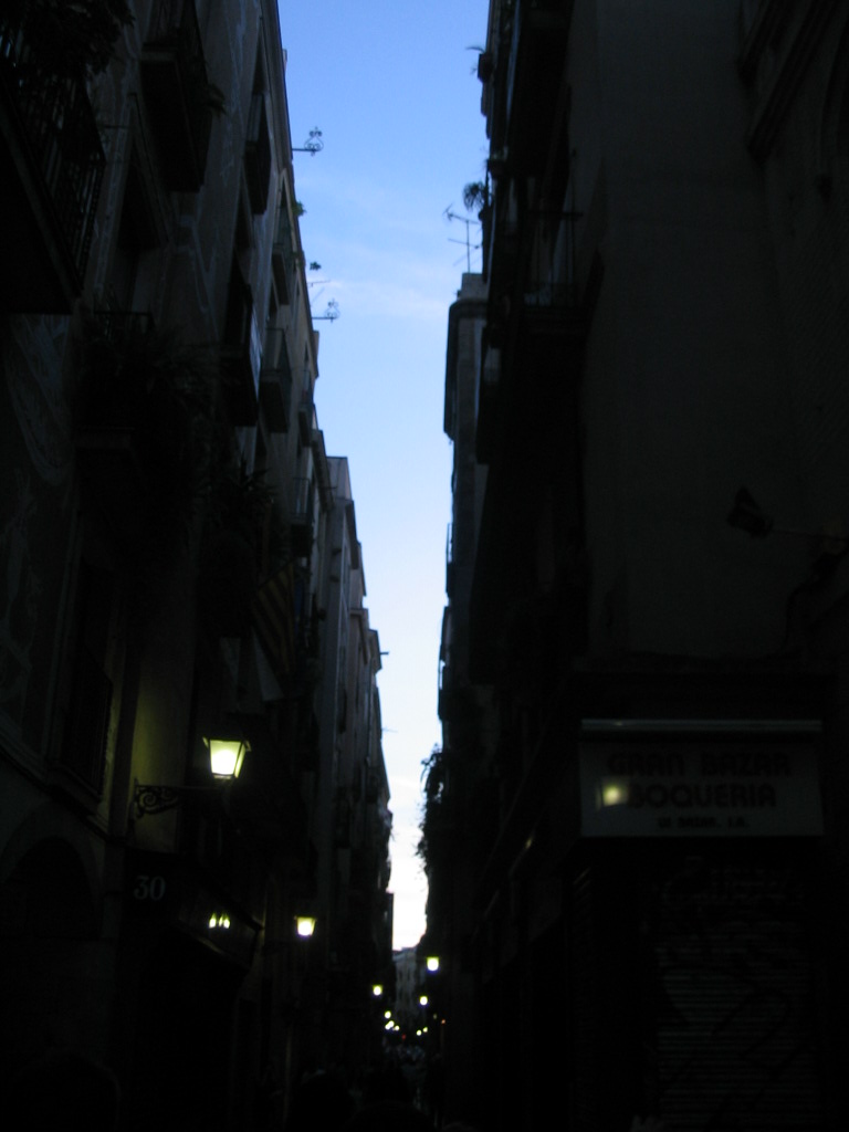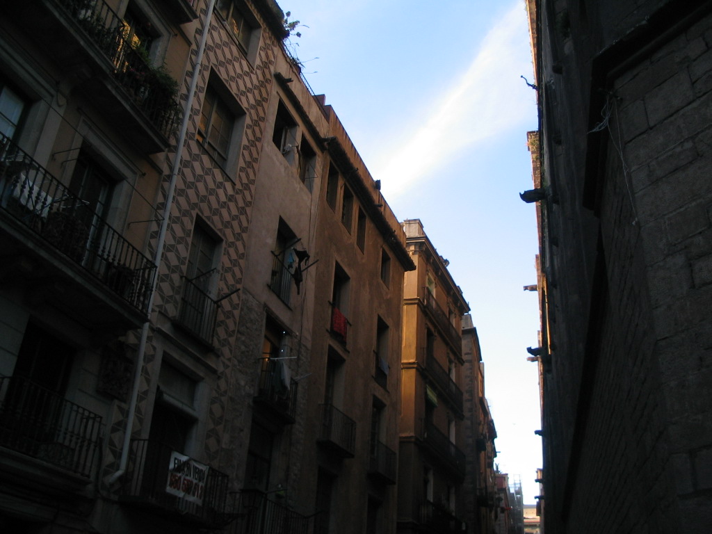 A sky wedge is often all that is visible due to the general hyper-oversquareness of the Ciutat Vella's streets.