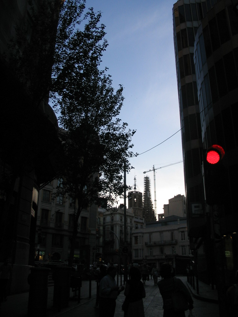 At the Via Laietana, one of the thoroughfares in the Ciutat Vella, is a glimpse over to the cathedral, its scaffolding-covered tower giving its identity away.