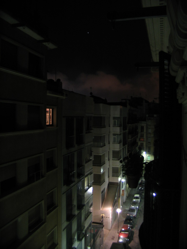 Finally, a nighttime peek down the street from the apartment's narrow balcony. I think we were on the sixth floor.
