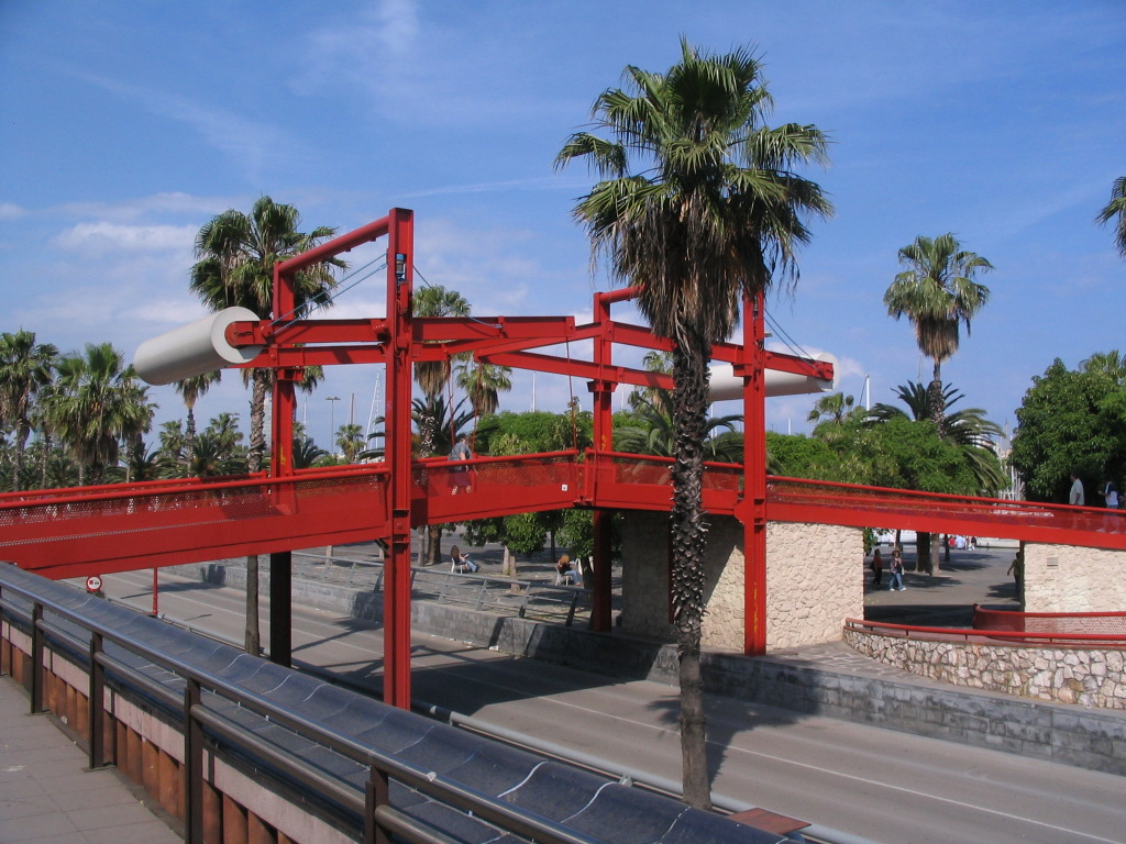 A rather Constructivist footbridge heading north along Passeig de Colom.