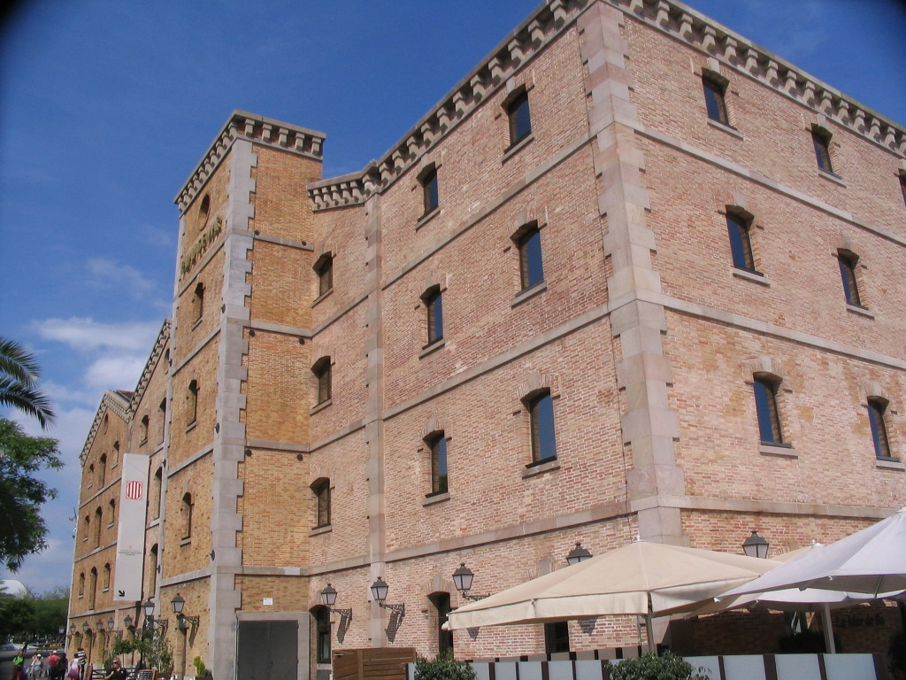 The imposing Palau de Mar at the vertex of the Port Vell (Old Port).