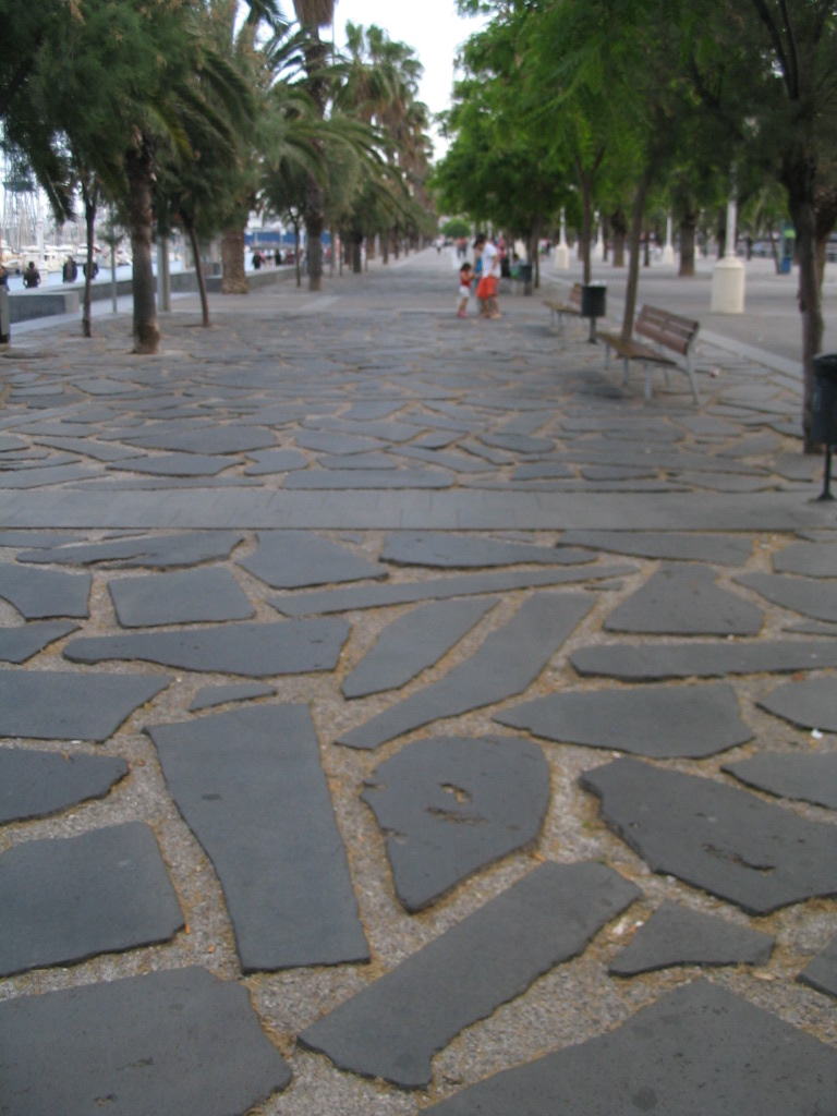 An infinitude of pavers, along the pedestrian mall paralleling the Passeig de Colom on the seaward side. I think.
