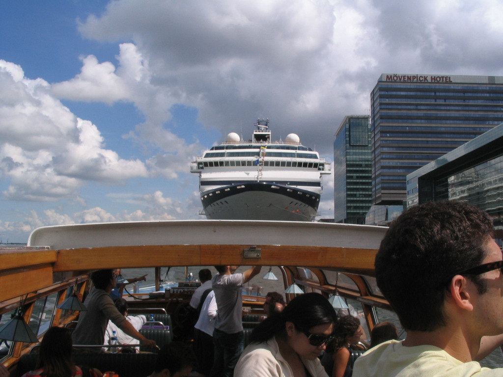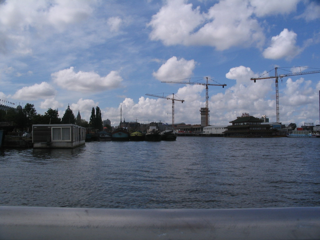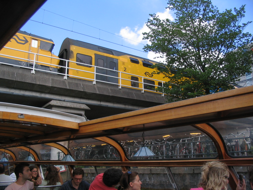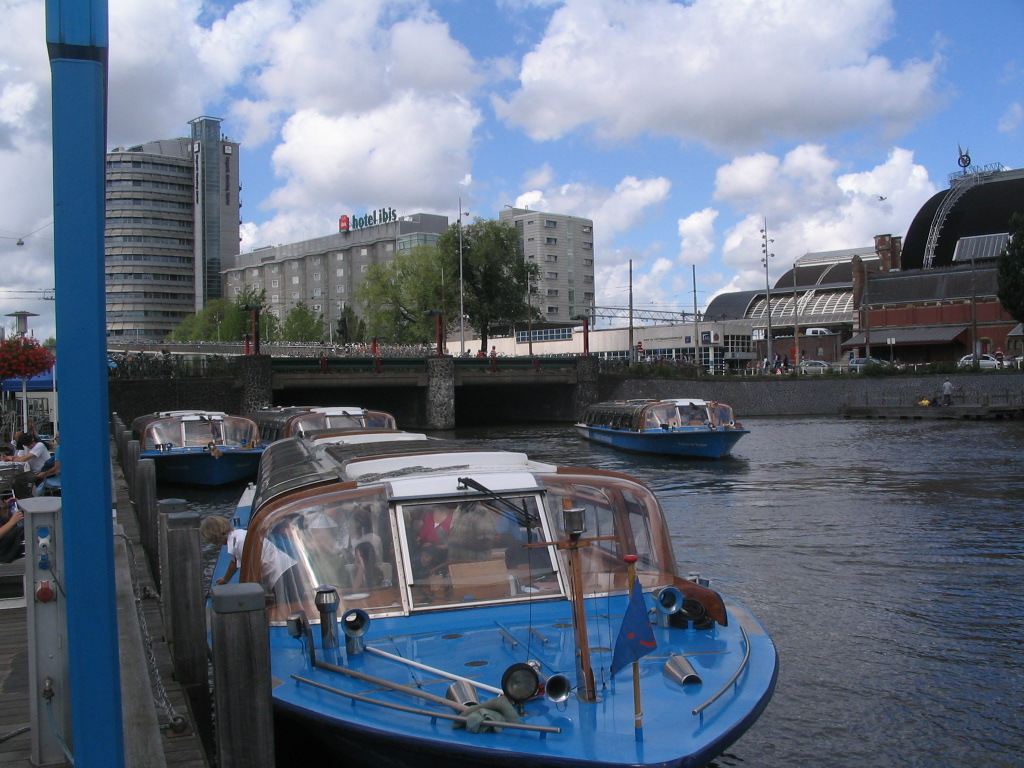 The tour boats were parked at Open Haven, just west of the Centraal Station. They had fully glazed roofs for optimum rubbernecking.