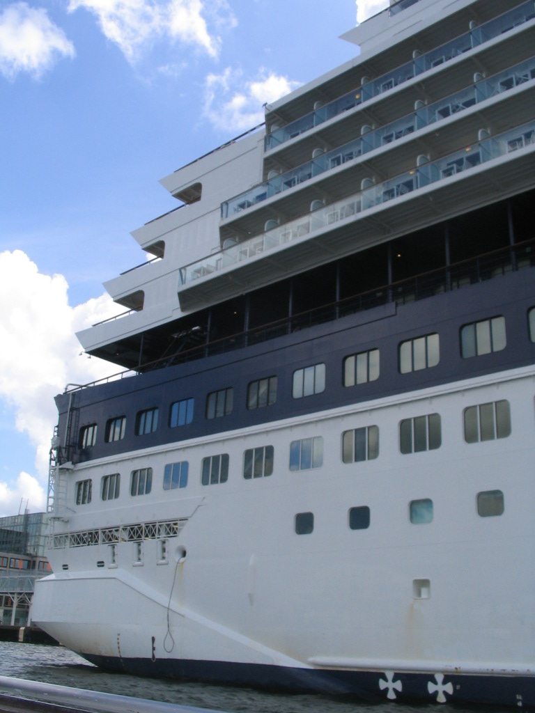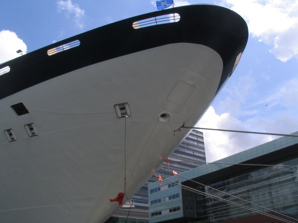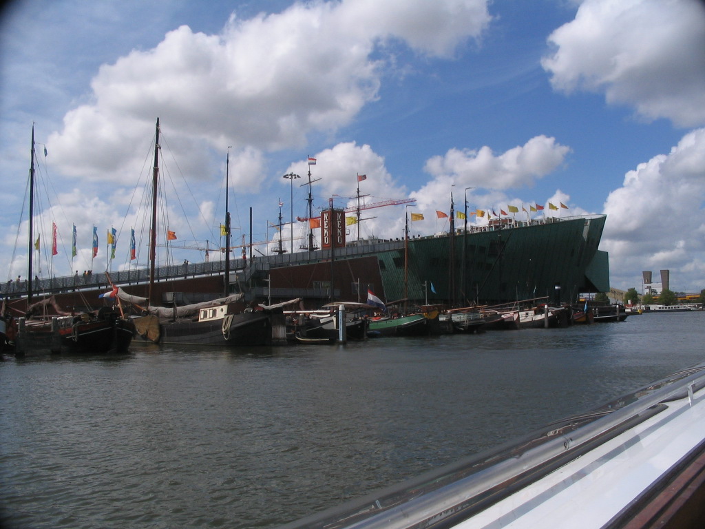 From the west side of NEMO, a look west over the Oosterdok toward the city center.