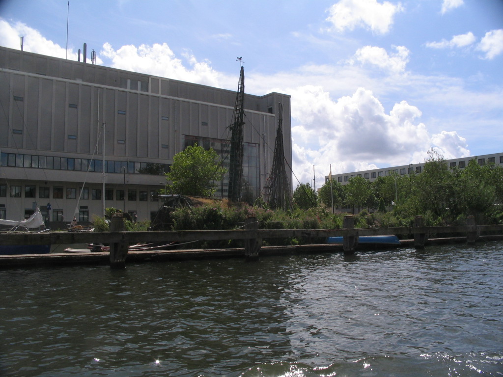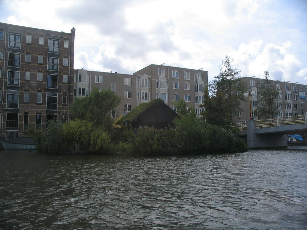 Near the inner end of the Entrepotshaven is this wicked overgrown platform, or maybe it's a houseboat even??