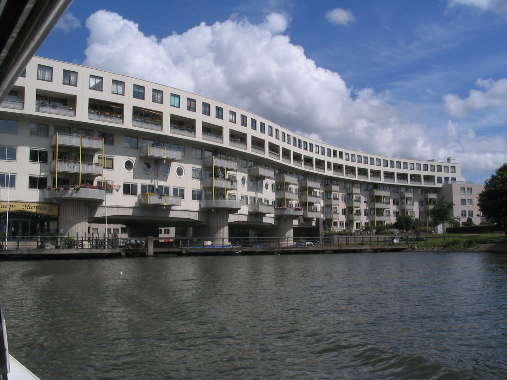 Looking over the Entrepothaven (Warehouse Harbor) toward some insistent horizontal rhythms along Zeeburgerkade.