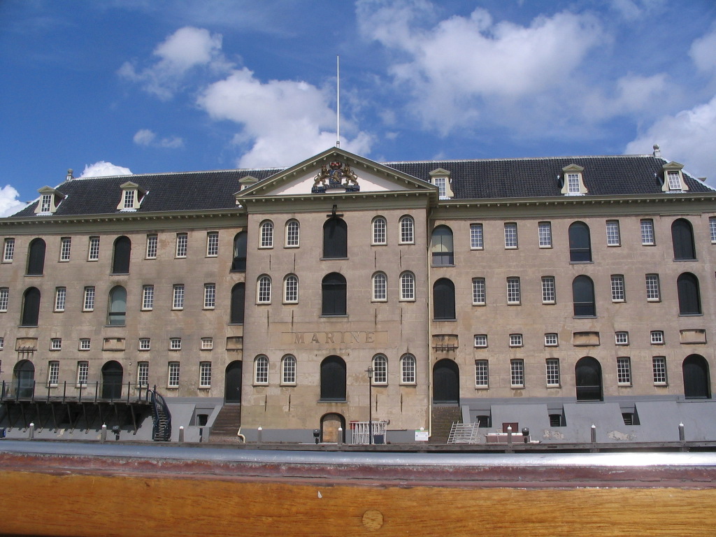 The imposing Scheepvaartmuseum (National Maritime Museum) at the western mouth of the Nieuwevaart.