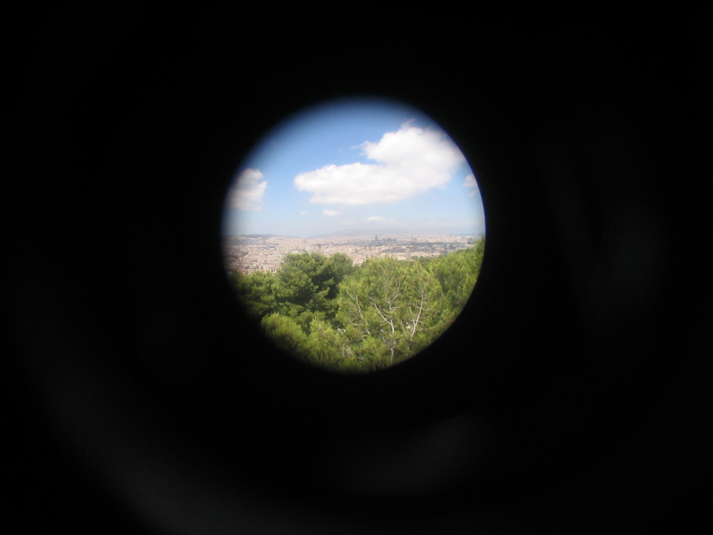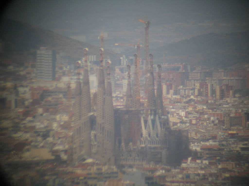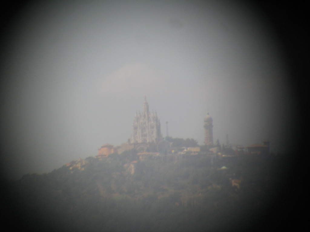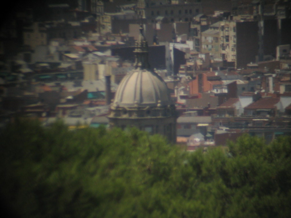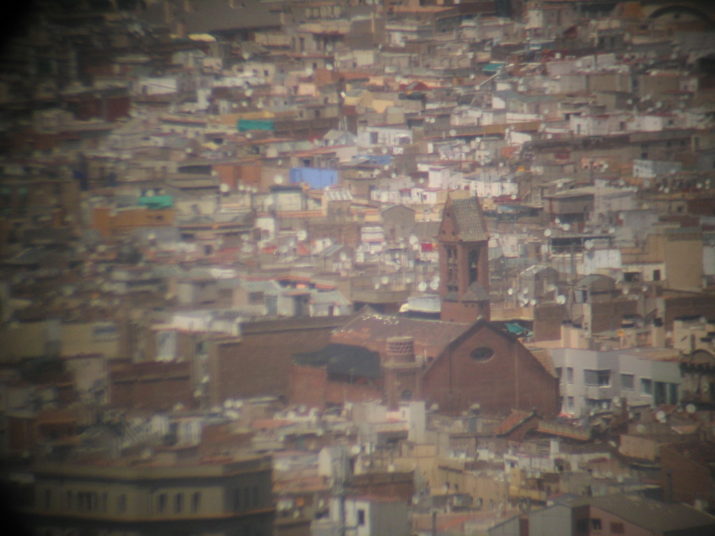 At the corner of that plaza stands a tourist telescope, and I dropped some coin to try it out. I'd been to the plaza a number of times on runs but never carried any money, so I hadn't had a chance to use to the telescope before. Now I was even able to use the camera through it, which was pretty sweet. Here of course is the Parròquia de la Mare de Déu del Carme, the church next to our apartment.