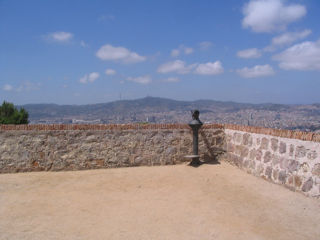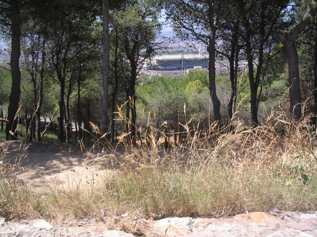 On the west side, where the slope is most gradual, a glimpse down to the Estadi Olímpic.