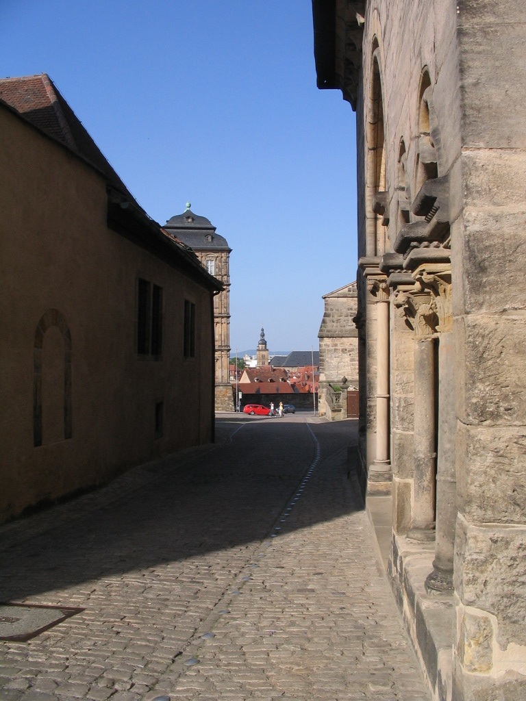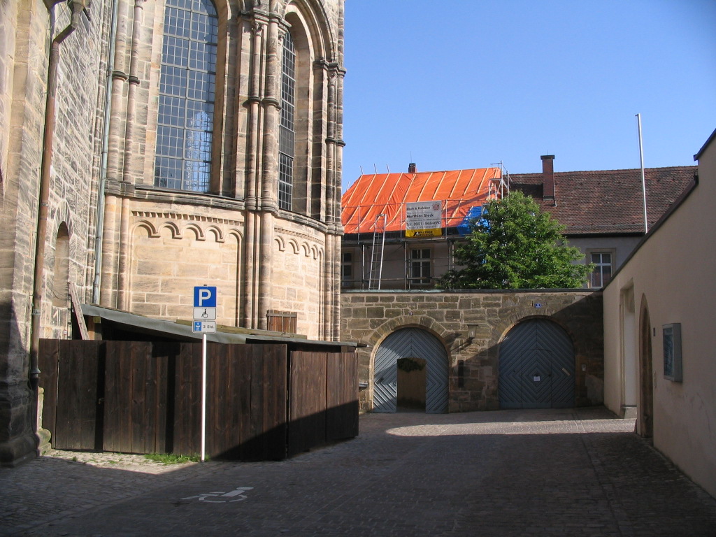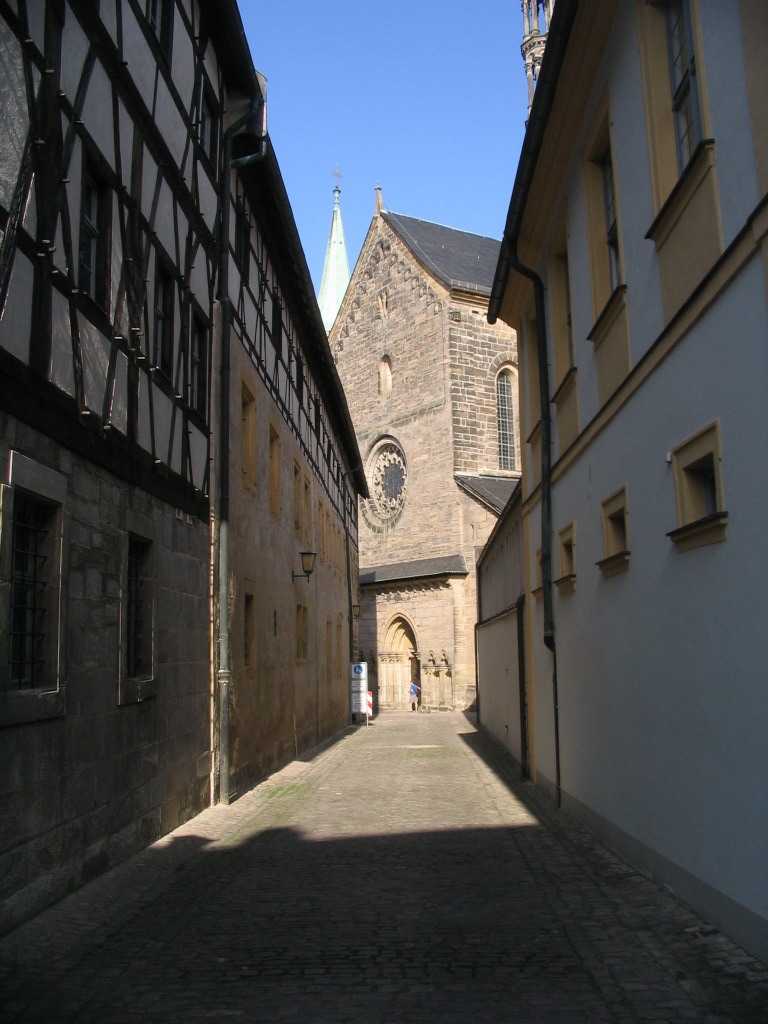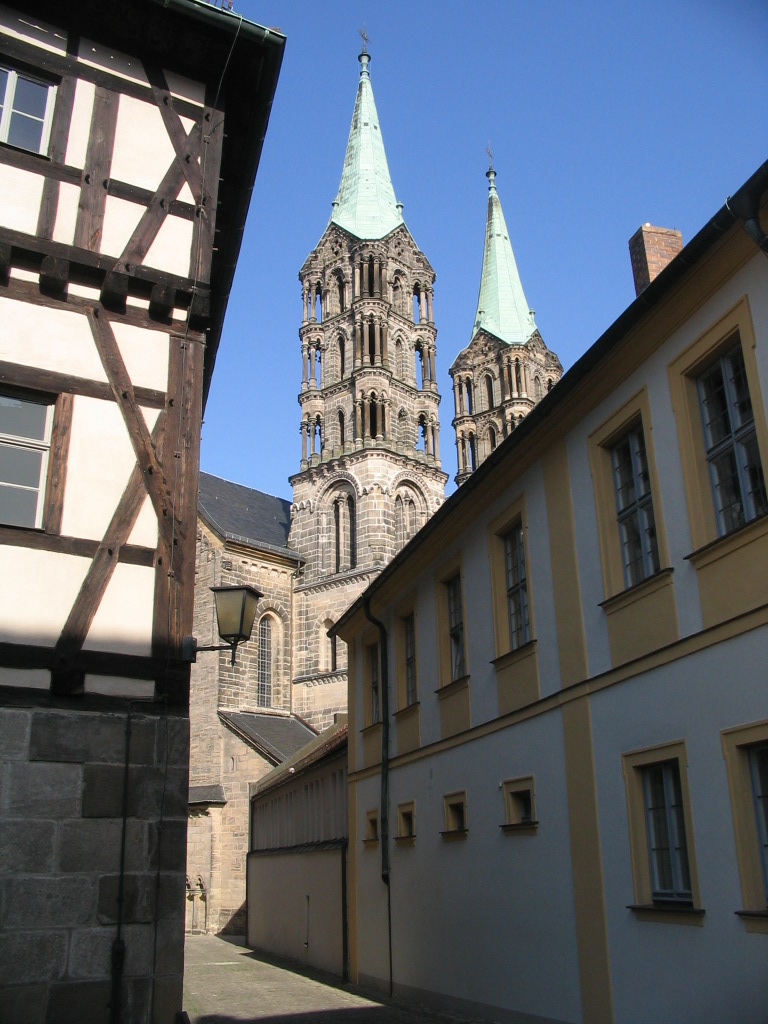 The complex completing the edge of the Domplatz, to the southwest, is the Alte Hofhaltung, the residence of the bishops prior to the Neue Residenz, full of charming half-timbered buildings. The palace of Holy Roman Emperor Henry II was, surprisingly, located on the same site in the 11th century. Here, the entrance to the Hofhaltung's courtyard from the Domplatz.