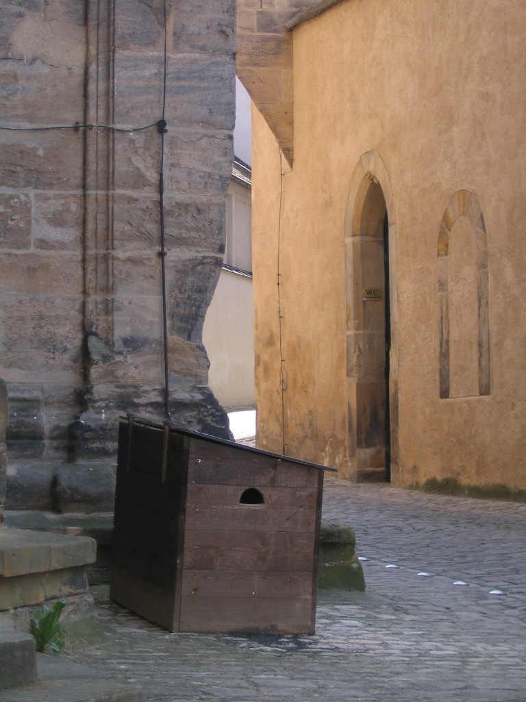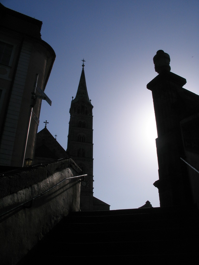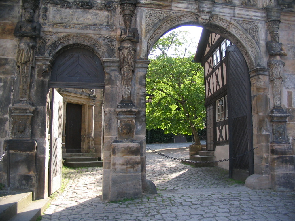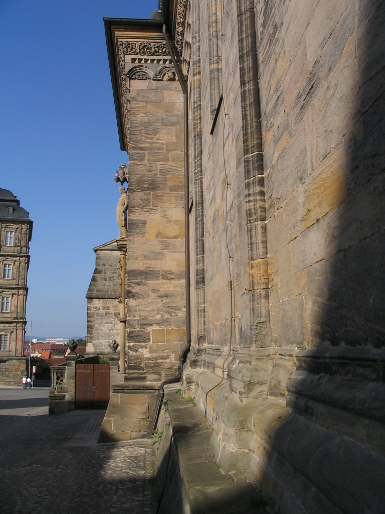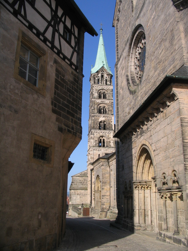 The complex completing the edge of the Domplatz, to the southwest, is the Alte Hofhaltung, the residence of the bishops prior to the Neue Residenz, full of charming half-timbered buildings. The palace of Holy Roman Emperor Henry II was, surprisingly, located on the same site in the 11th century. Here, the entrance to the Hofhaltung's courtyard from the Domplatz.