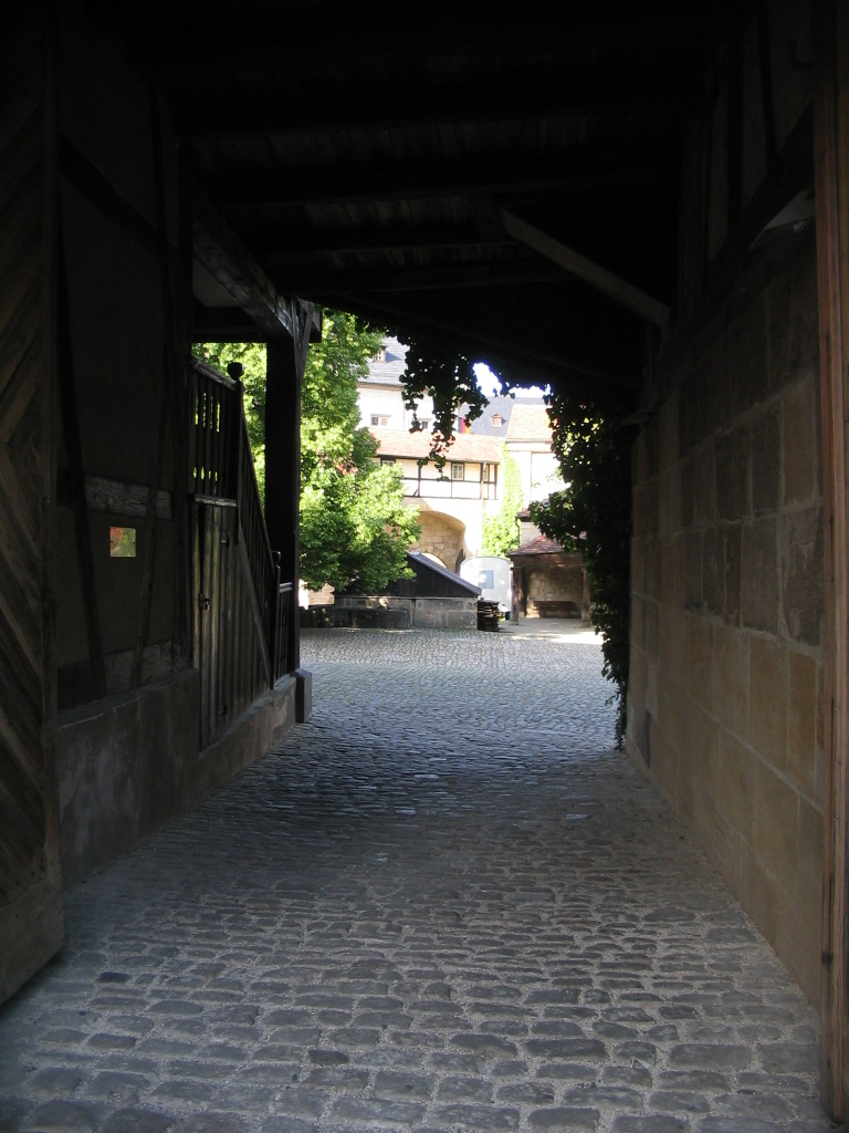A lovely covered way, seeming to lead to a courtyard to the north, judging by the sun direction, but I can't quite locate it. I think it's a little further west from the Hofhaltung.