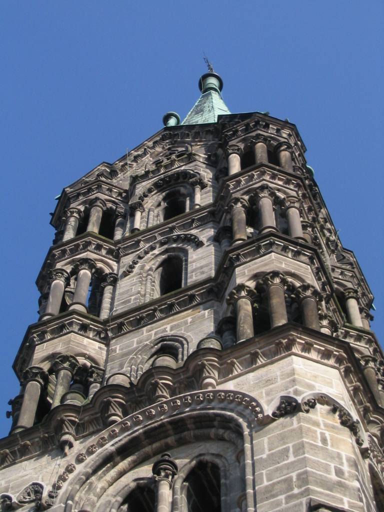 The spire painstakingly buffered by sky on all sides from the Alte Hofhaltung and the north transept of the Dom.