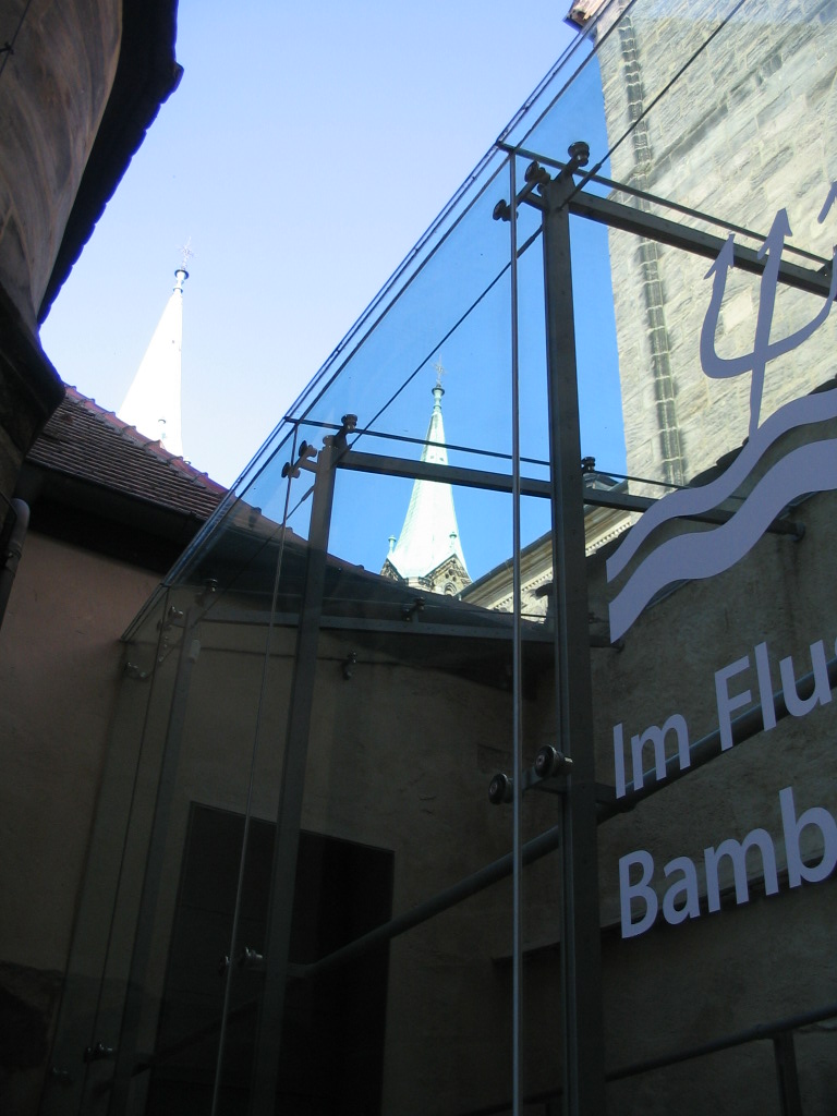 ...and it was this partial (I think) glass enclosure in another corner of the Hofhaltung, here with the Dom spires peeking over. At the moment I can't quite recall from the photos or memory the precise configuration of the glazing or why it was there.