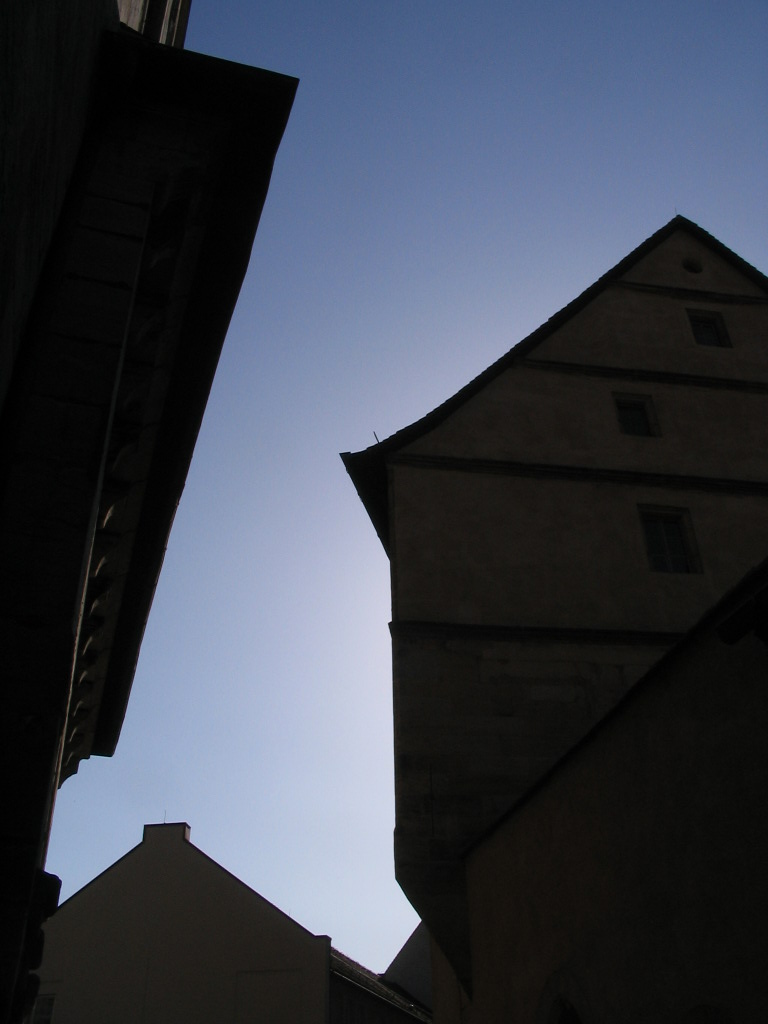This is one of my favorite shots from the trip, one of the few that I remember pretty easily without looking at it for a long time. It's another ol' roof silhouette composition, but I particularly like the balance of figure and ground shapes here. This is looking west through the gap between the Dom and the Hofhaltung.