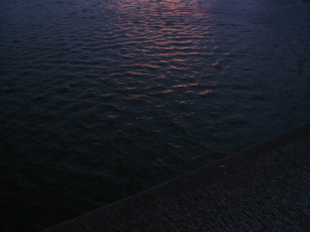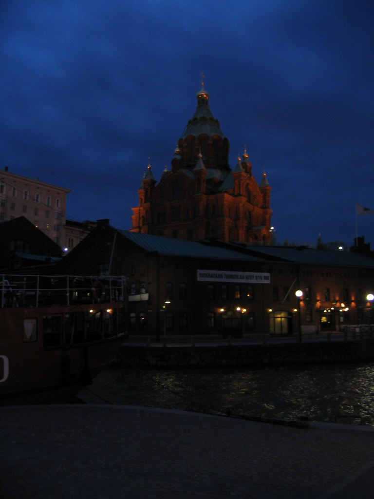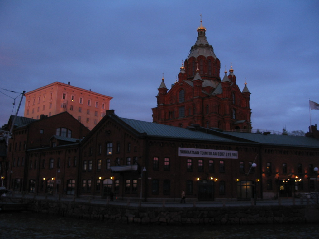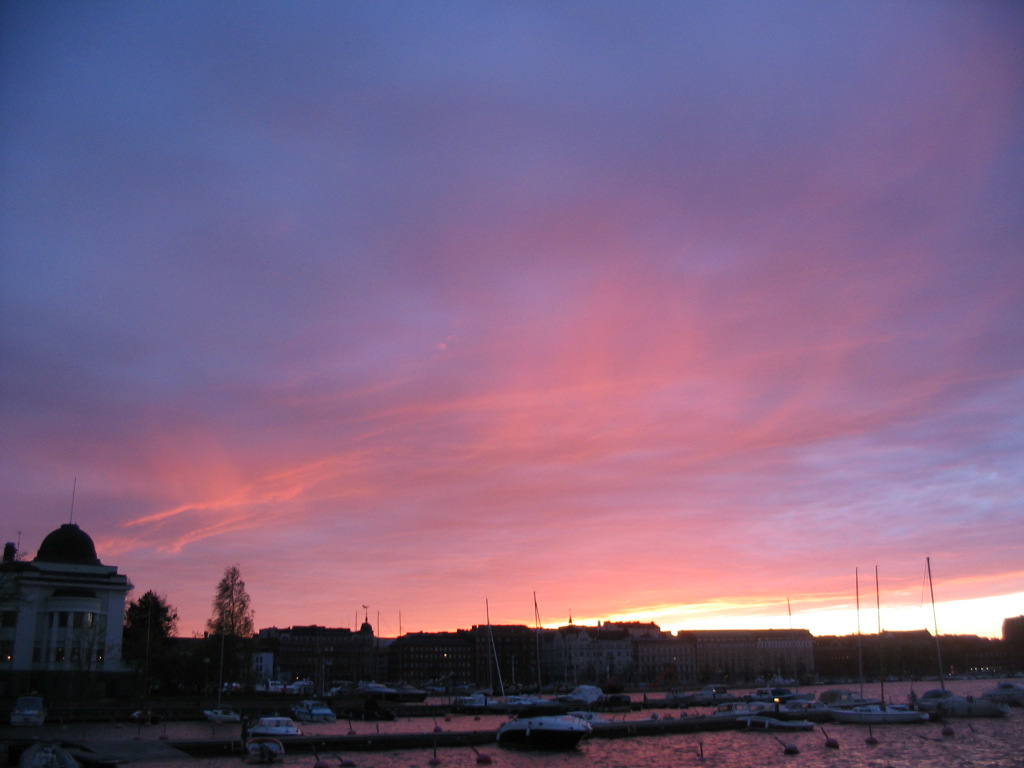 The view out toward Hanasaari, twilight still bright below the clouds.