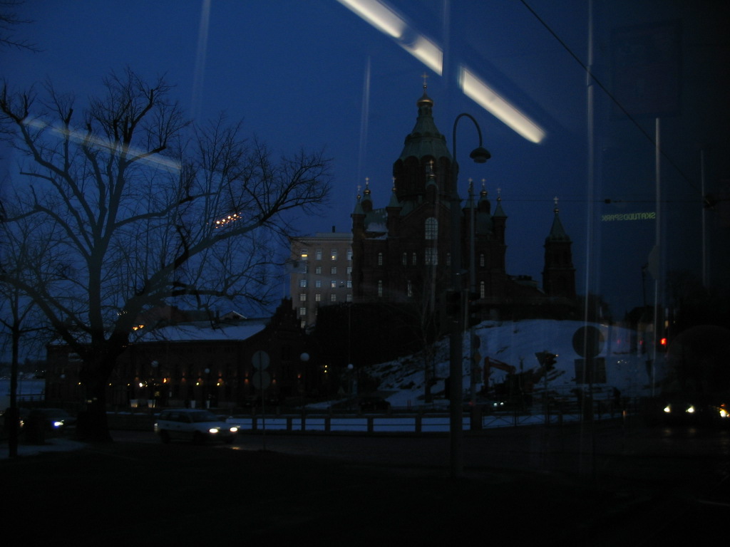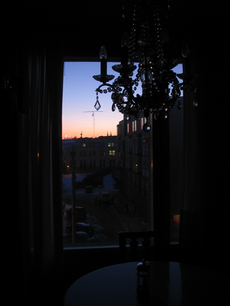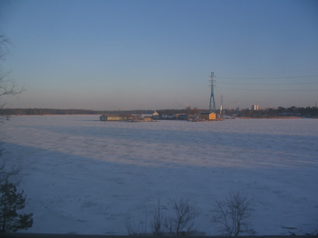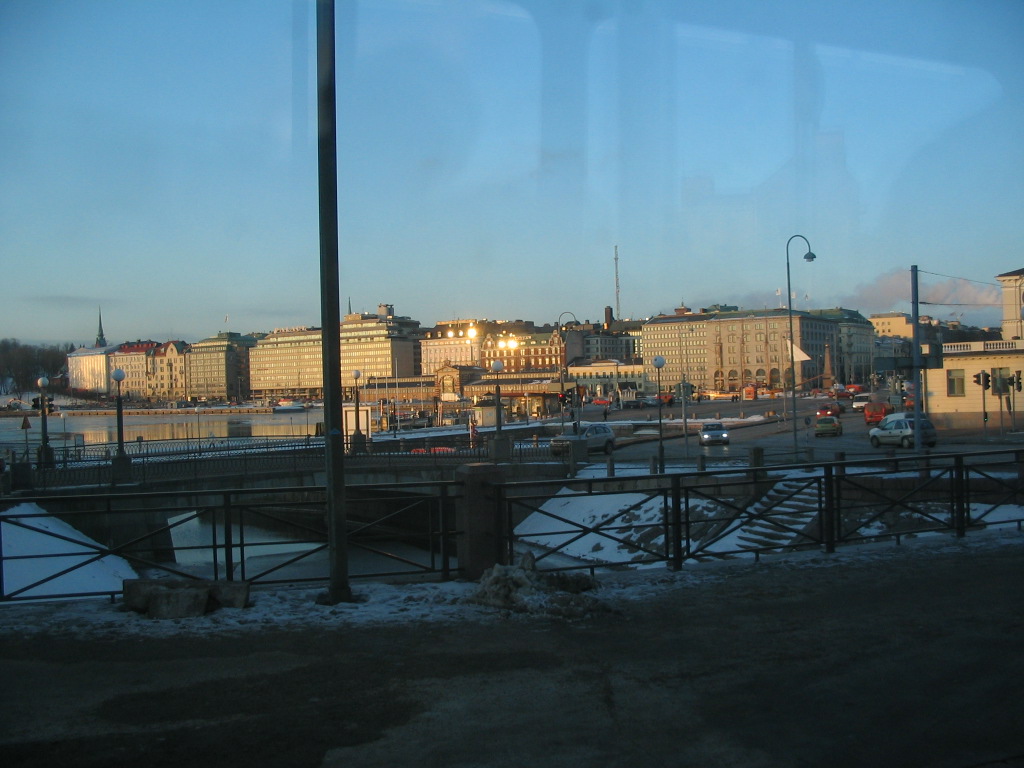 Early morning sun on the eastern edge of downtown, shot from the Katajanokka canal, Kauppatori (the market square) toward the right.