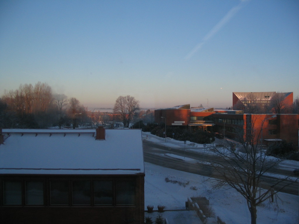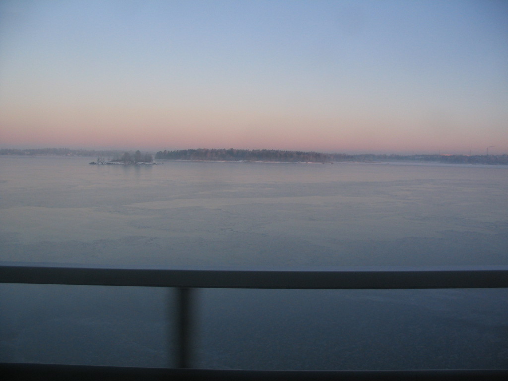 Dreamlike view of the bay to the north on the bus route west to TKK in the morning, as the sun was just beginning to show up.
