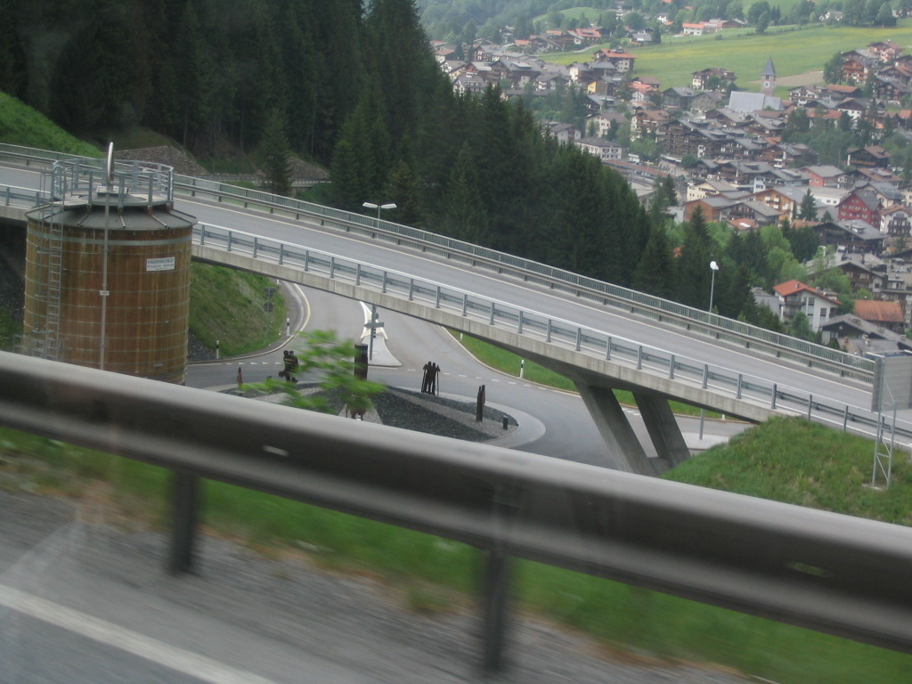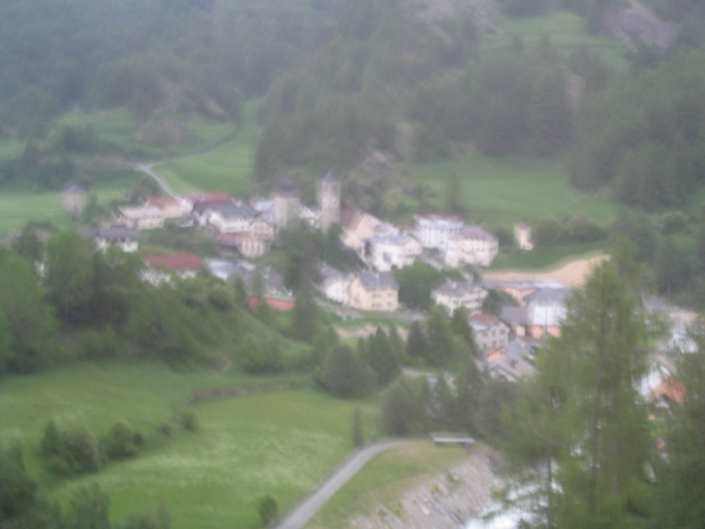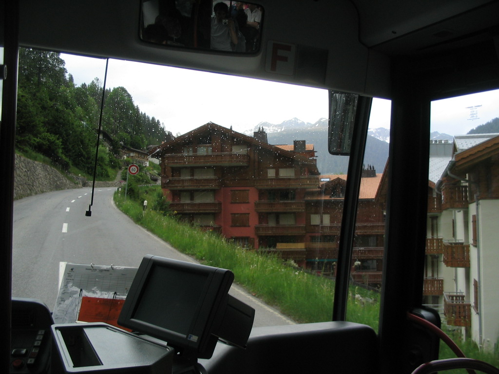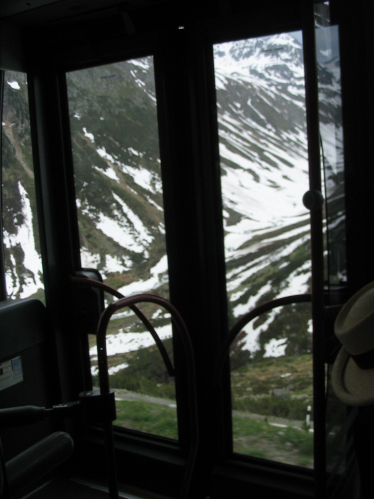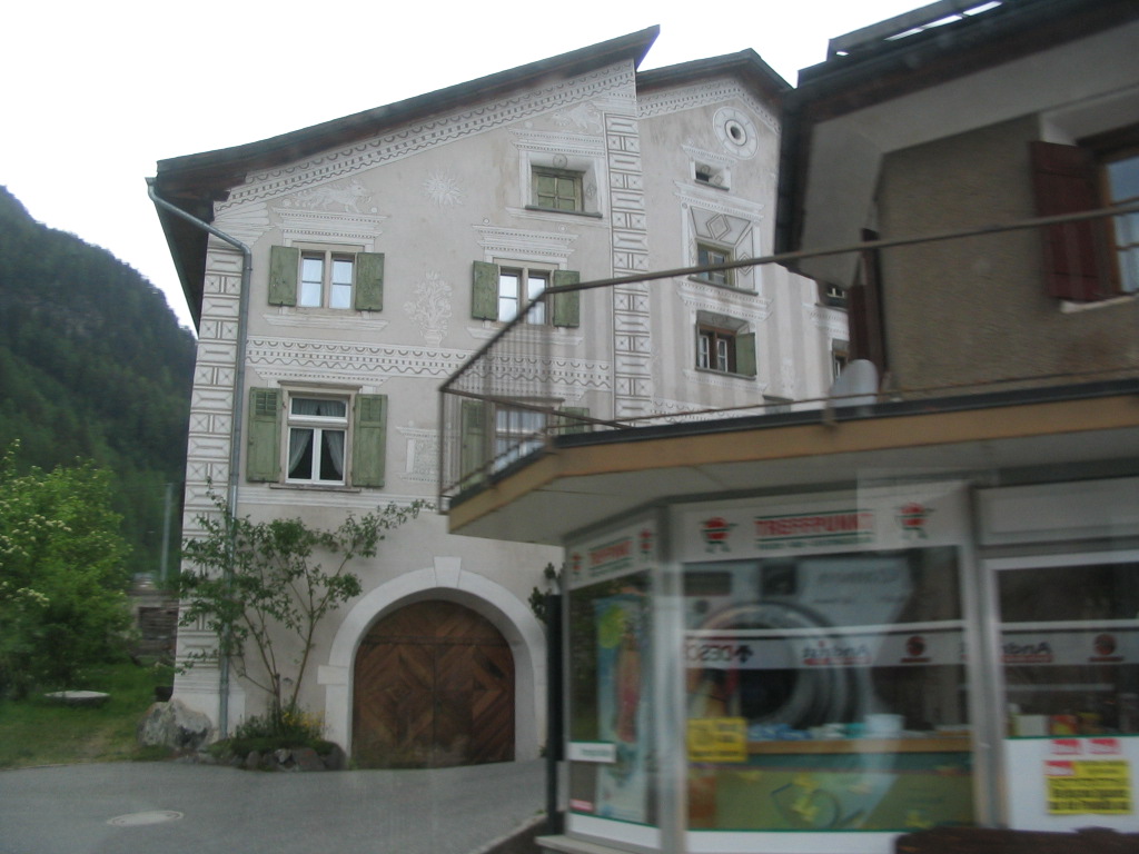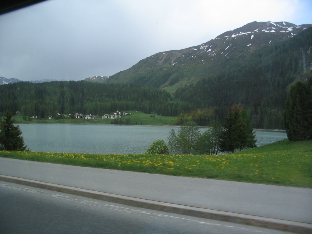 And by the way, WRONG about a straightforward final train ride. The Vereina Tunnel between Klosters and the Unterengadin (Lower Engadin (Lower En Valley (the En is the local, Romansch name of the Inn River))) was closed that day for some reason, so it was bus time. Oh, perfect timing, rain.