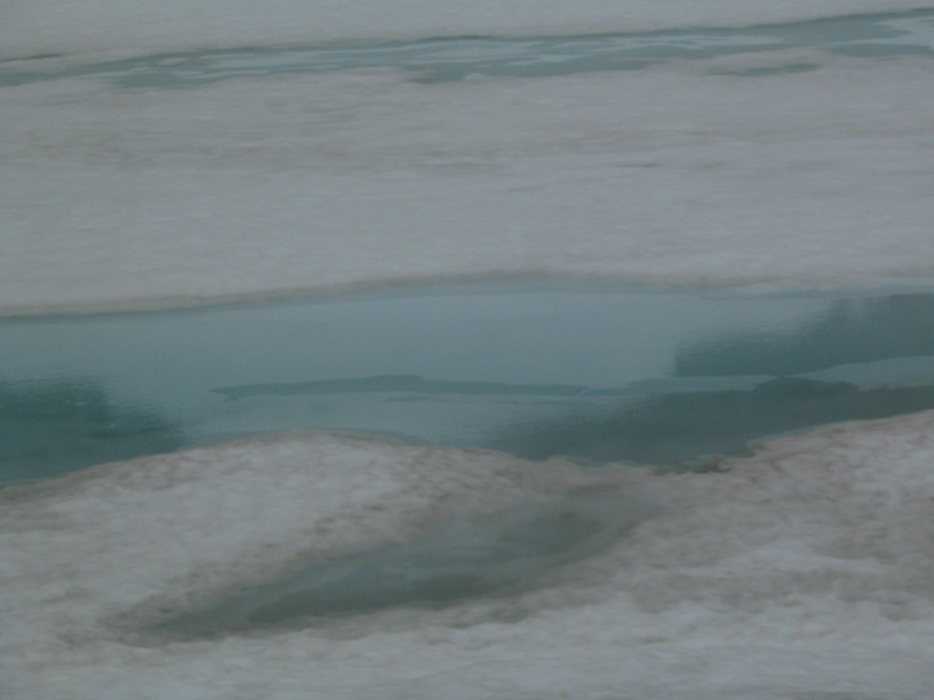 Bacteria-tinted thawing pools.