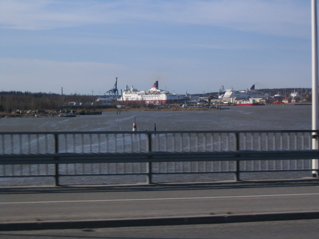 An impressive balcony structure across the river that looks like a highway, but looking at it on Bing Maps in bird's-eye view reveals it to be something weirder, some sort of industrial platform.
