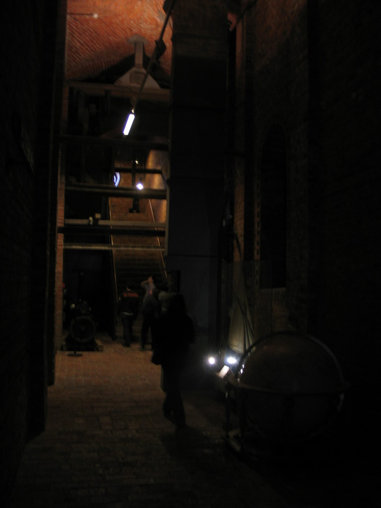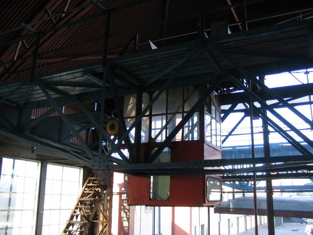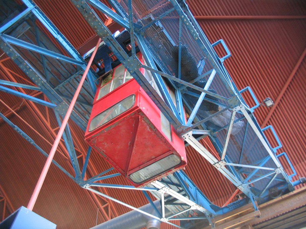 In the lobby of the academy's concert hall is this old suspended car (not sure of the right term) from the factory days.