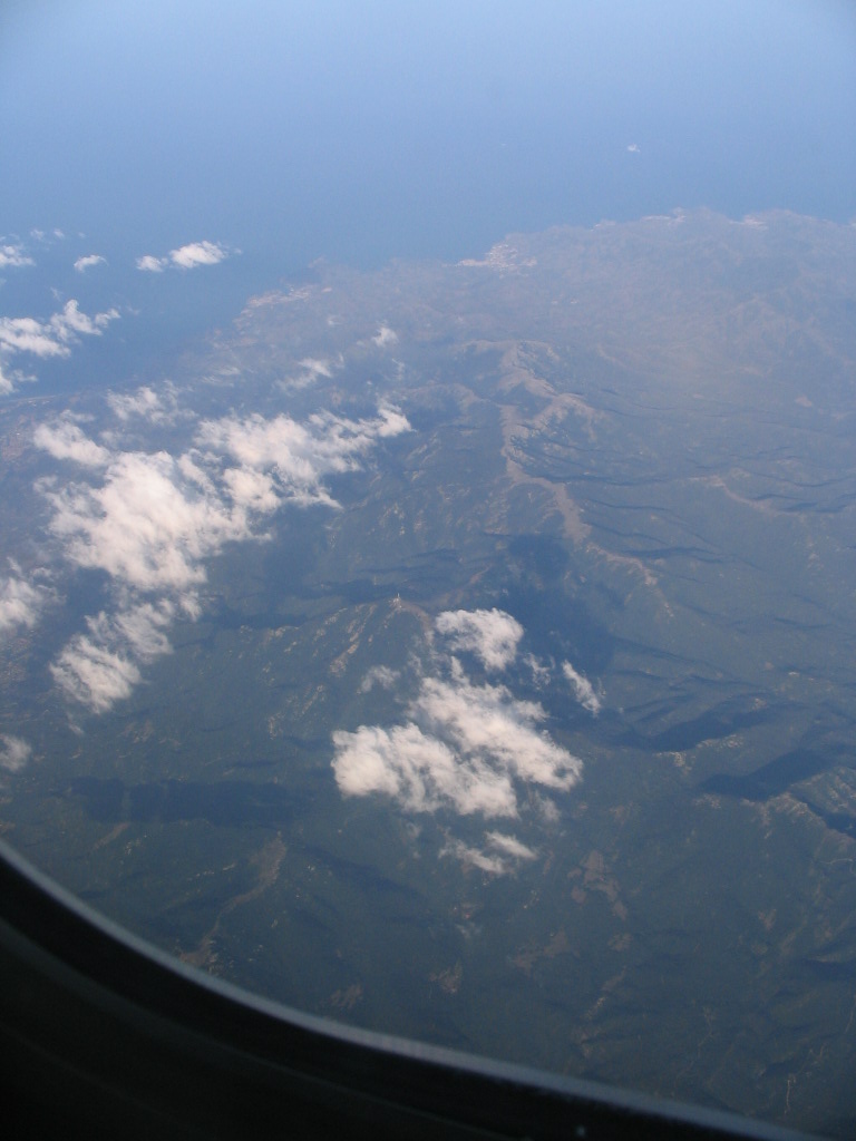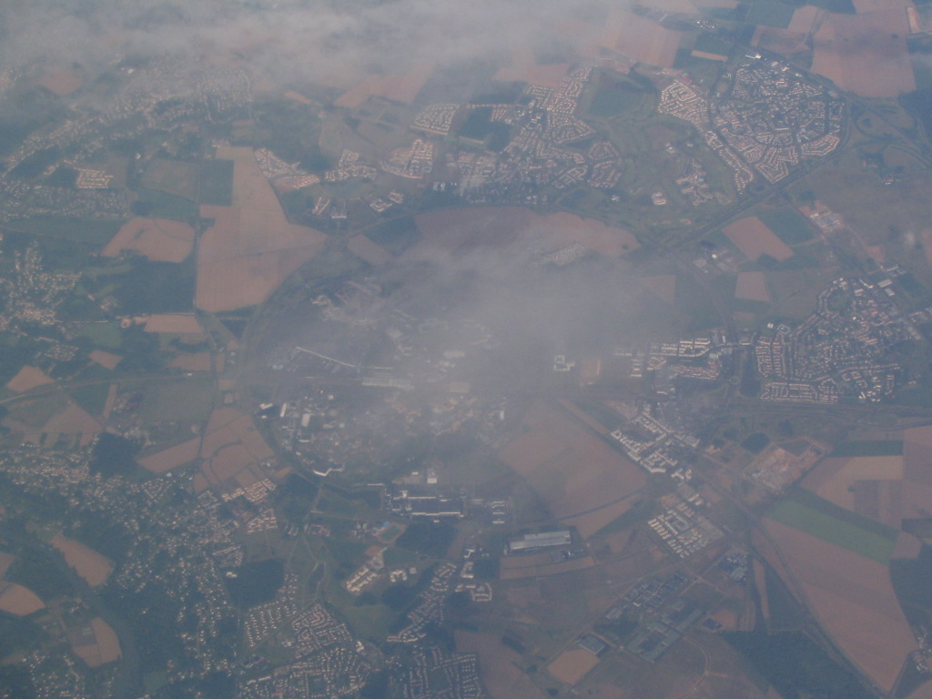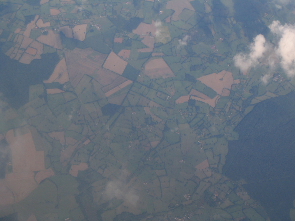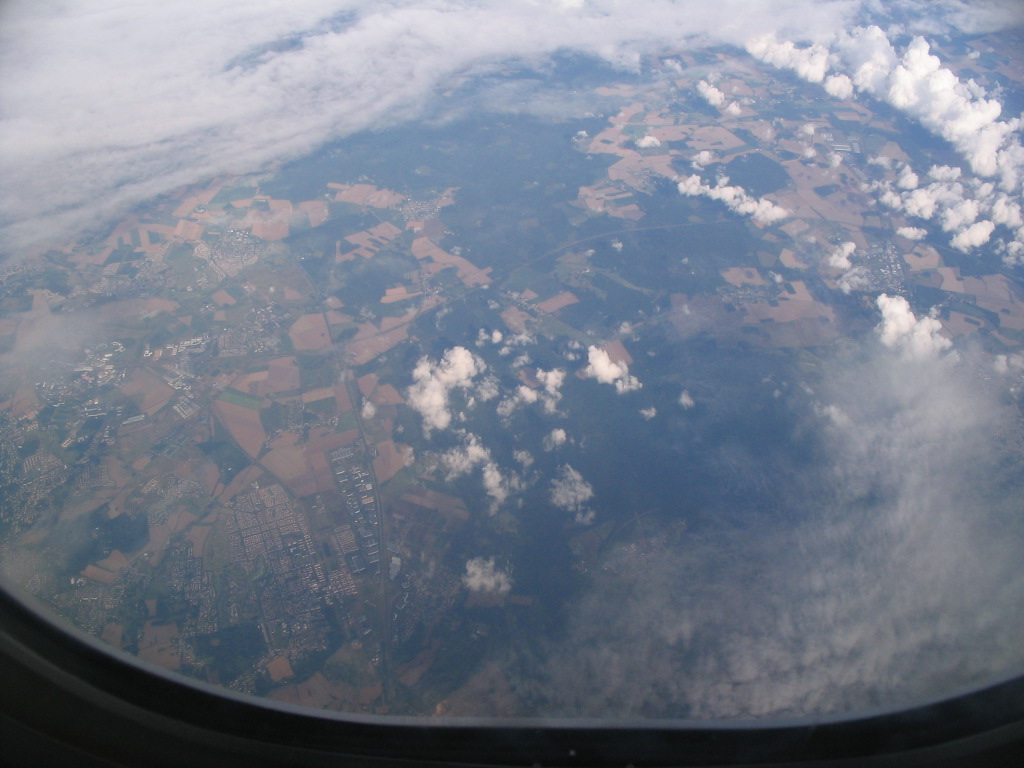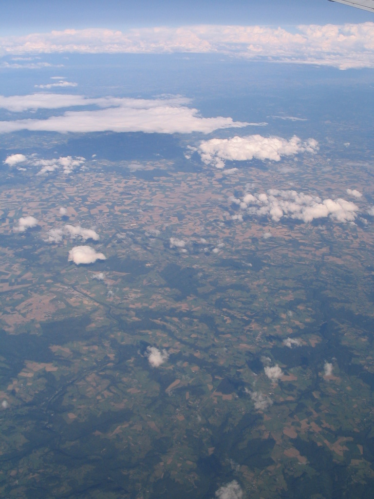 The same circle is still in view here, halfway up at far left. If I knew my French geography better, I might be able to identify it and that distinctive gridded settlement at lower left. Or at least I assume this is France, given that most of the flight occurred over it.