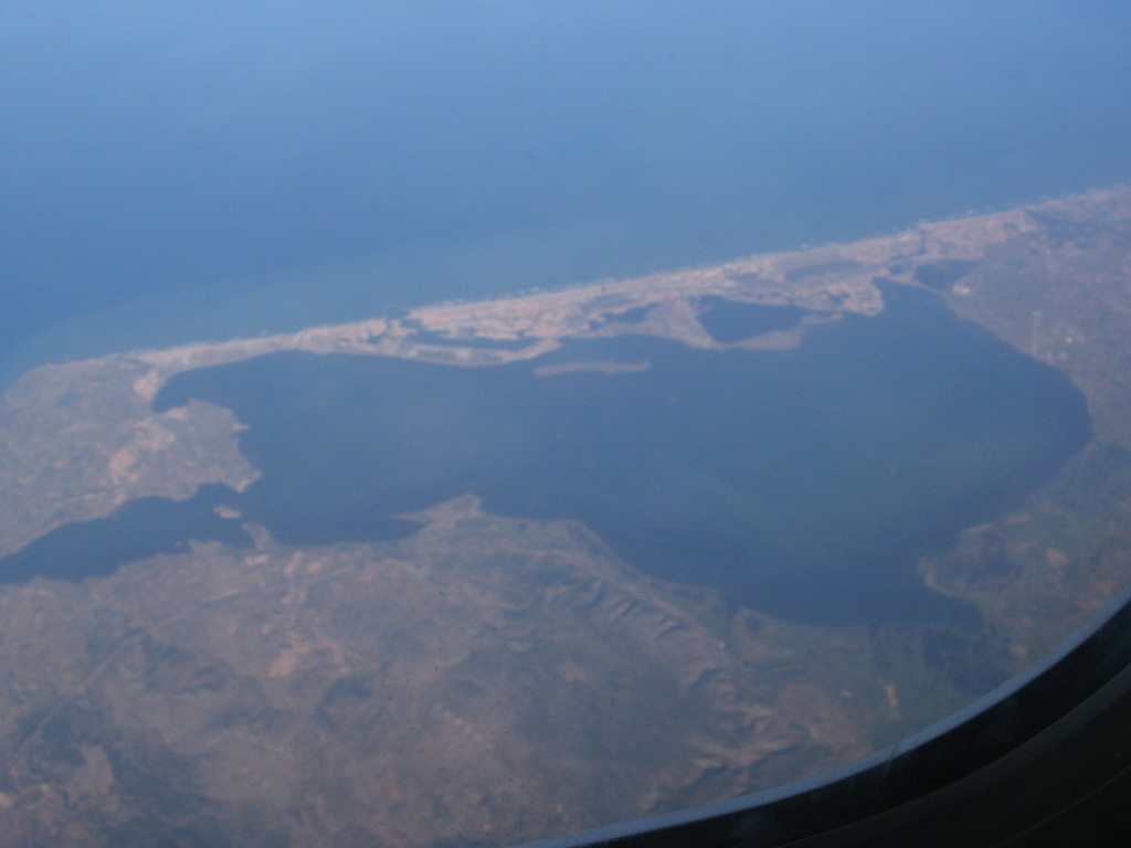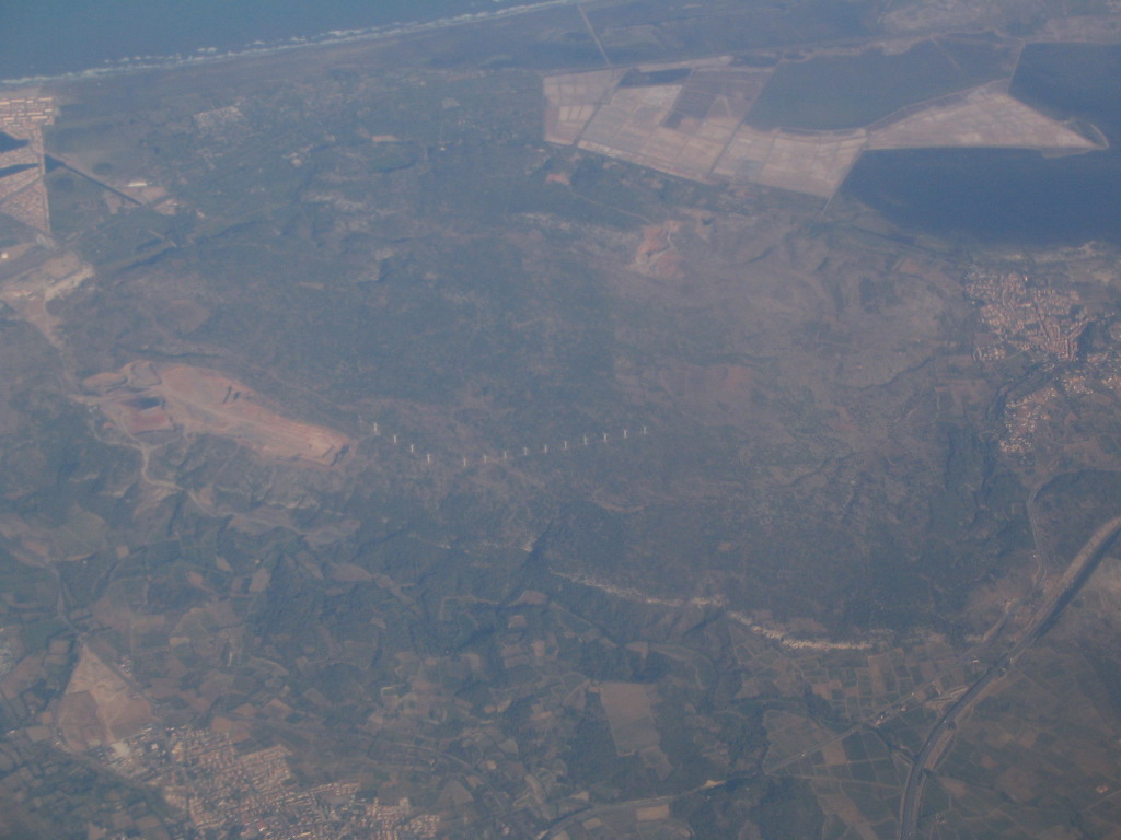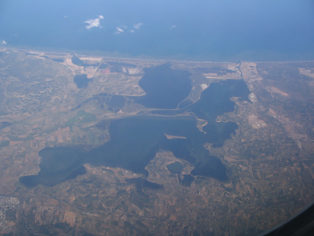 The backwater lakes near Narbonne. The city of Gruissan is at upper left and of Port-la-Nouvelle at upper right.