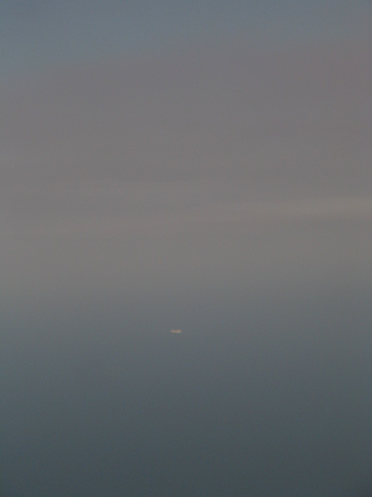 A distant cruise ship suspended in a Tanguyan unworld. A huge Tanguyan unworld.