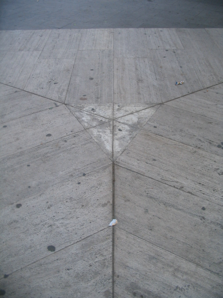 On the walk back from the Metro: the triangularity of this paving at the tiny Plaça Dubte (at the ends of Carrer del Princep de Viana and Carrer de la Cendra at Carrer de la Riera Alta) extends to three trees planted in each of the corners. Which you'll have to take my word on, or look it up for yourself on Street View.