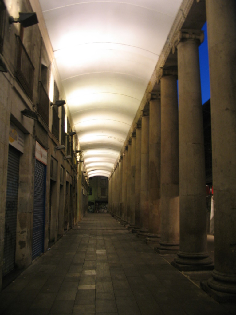 We passed through this arcade once back inside the Ciutat Vella on the way home. I think this is the Passatge dels Coloms next to the Boqueria market.