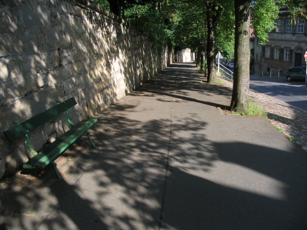 I skirted the north edge of the Domplatz plateau along Aufsessstraße. This wall holds up one end of the Neue Residenz.