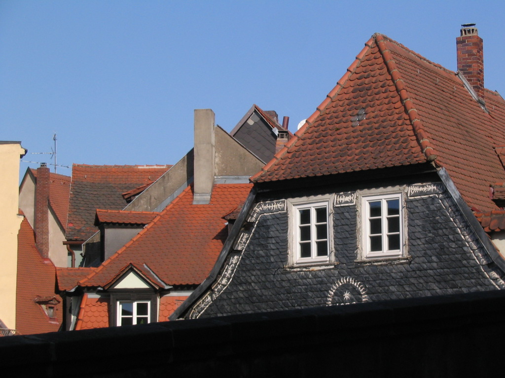 Have some roofs. — The vegetal border pattern around the gable of the house in front looks sort of like a cursive Semitic script at first glance, like Syriac almost.