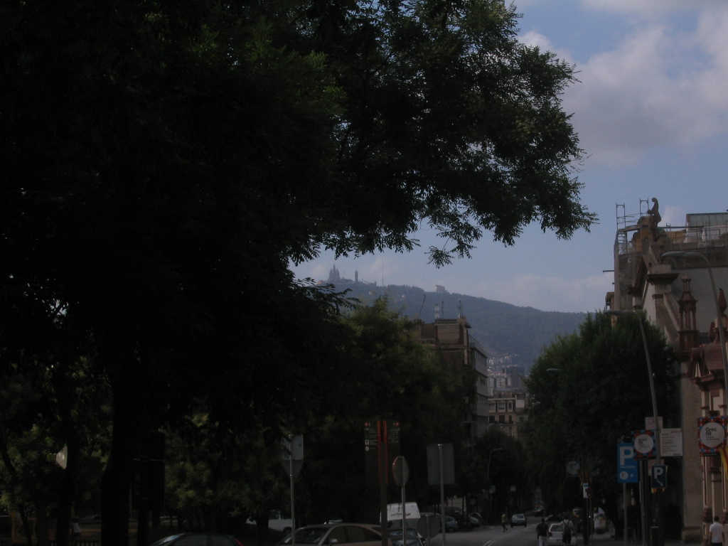 Framed Tibidabo along Carrer de Lleida.